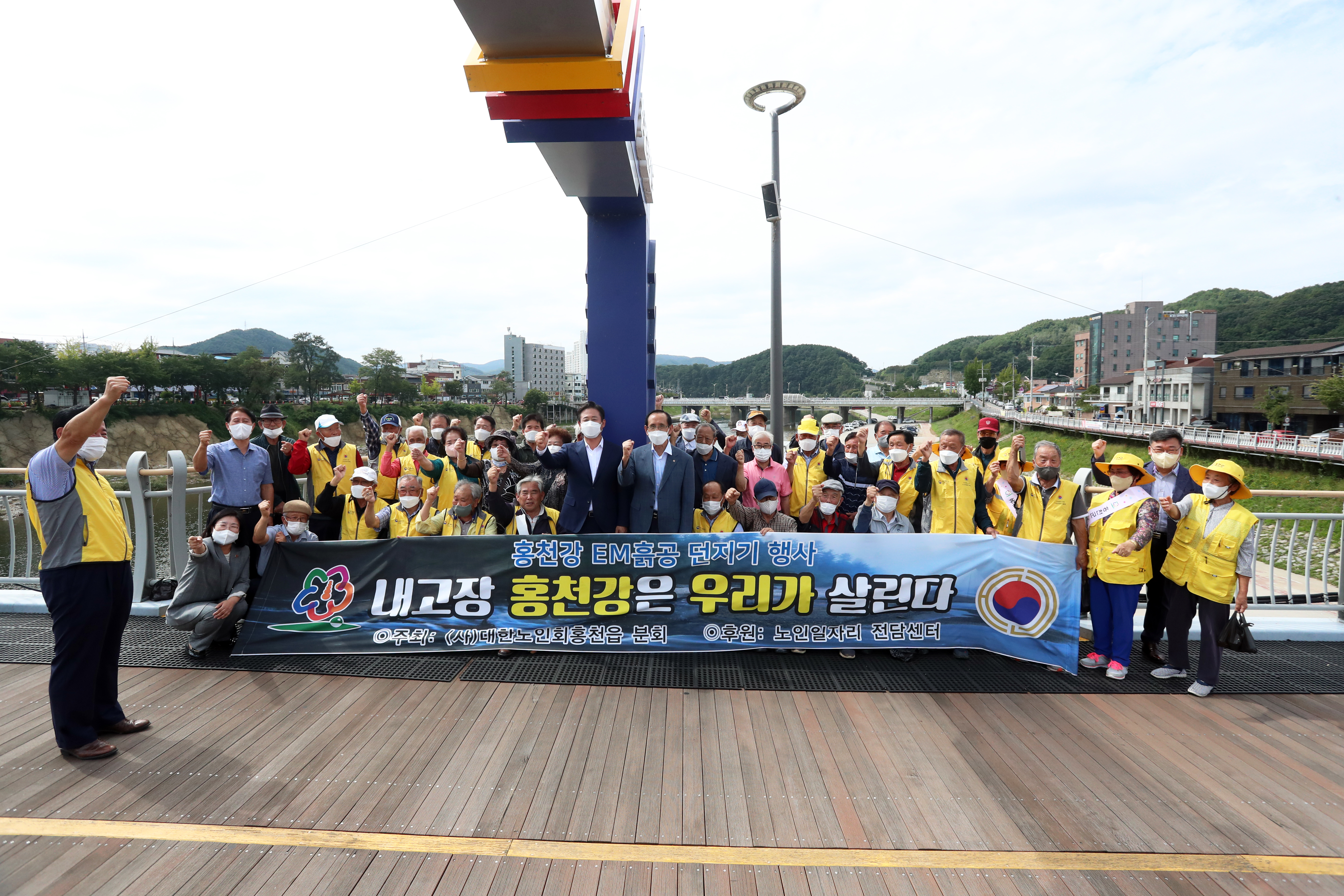 [강원사회복지신문 서은진 기자]=(사)대한노인회 홍천읍 분회(회장 현종길)는 지난 9월 15일 지역봉사단 어르신들과 함께 홍천강 EM흙공 던지기 행사를 개최했다. 지난해에 이어 개최된 행사는 홍천군 노인일자리 전담센터 내 EM사업단의 지원 아래 '내고장 홍천강은 우리가 살린다'라는 구호와 함께 연희교에서 진행됐다. E...