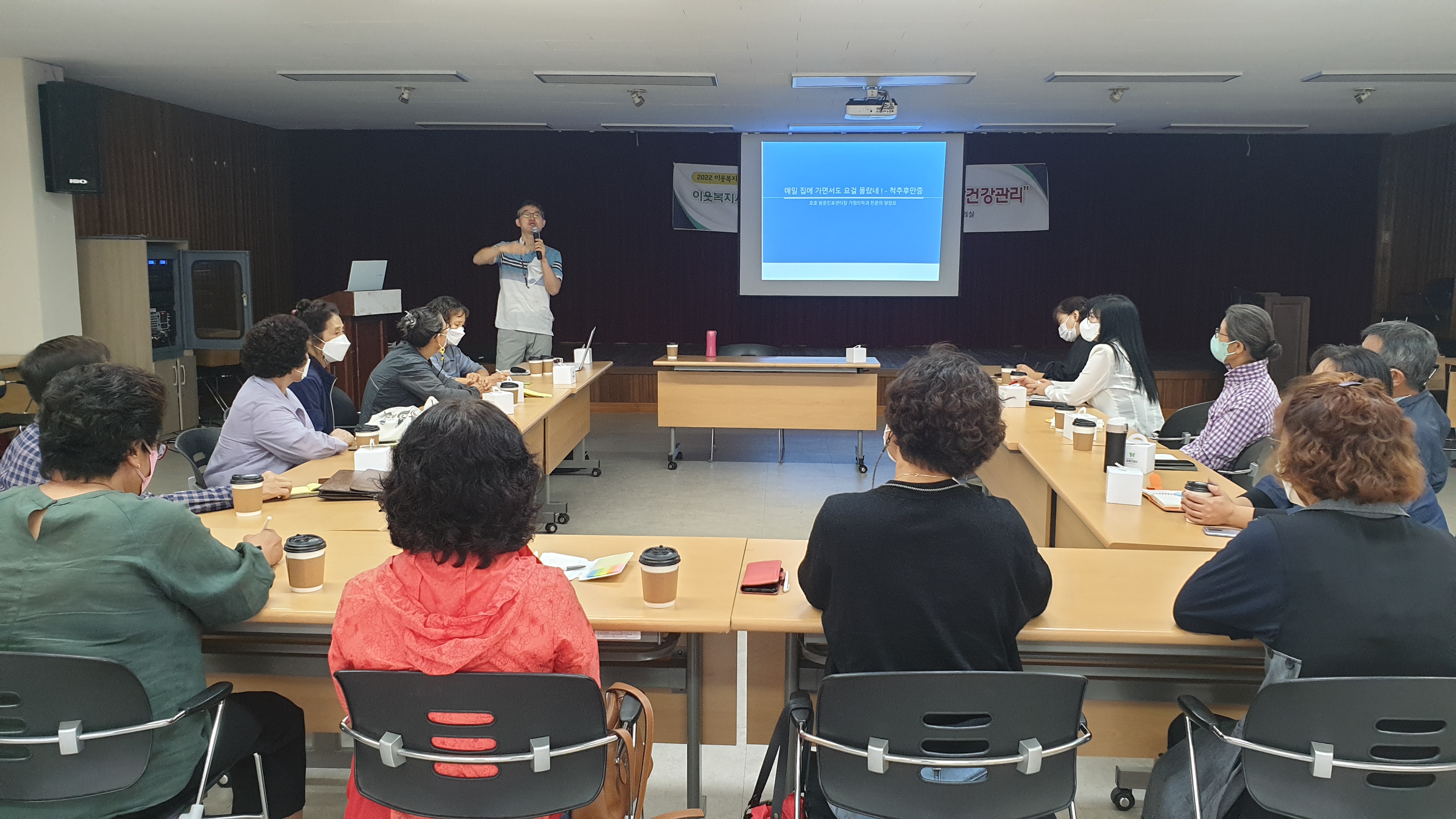 [강원사회복지신문 홍기한 기자]=K-water 소양강댐지사(지사장 오병동)가 설립한 소양강댐효나눔복지센터는 지난 8월 31일(수) 오전 10시~12시에 신북읍행정복지센터 2층 대회의실에서 이웃복지사 역량강화를 위한 '어르신의 척추후만증 등 건강관리(양창모 호호방문진료센터 센터장)' 교육을 진행했다. 이번 교육은 춘천시 ...
