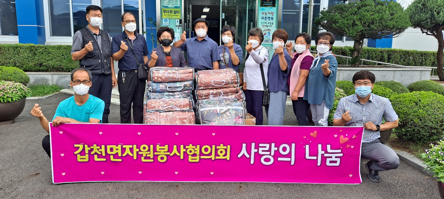 [강원사회복지신문 홍기한 기자]=횡성군 갑천면자원봉사협의회(회장 이용표)는 지난 8월 5일, 취약계층 어르신 20가구에 여름이불 나눔활동을 펼쳤다. 이날 활동이 더욱 의미 있는 이유는 이불 구입 기금 덕분이다. 지난 갑천면민체육대회에서 음료 나눔 봉사를 한 협의회가 대회 주최 측에서 지원받은 격려금을 어려운 이웃...