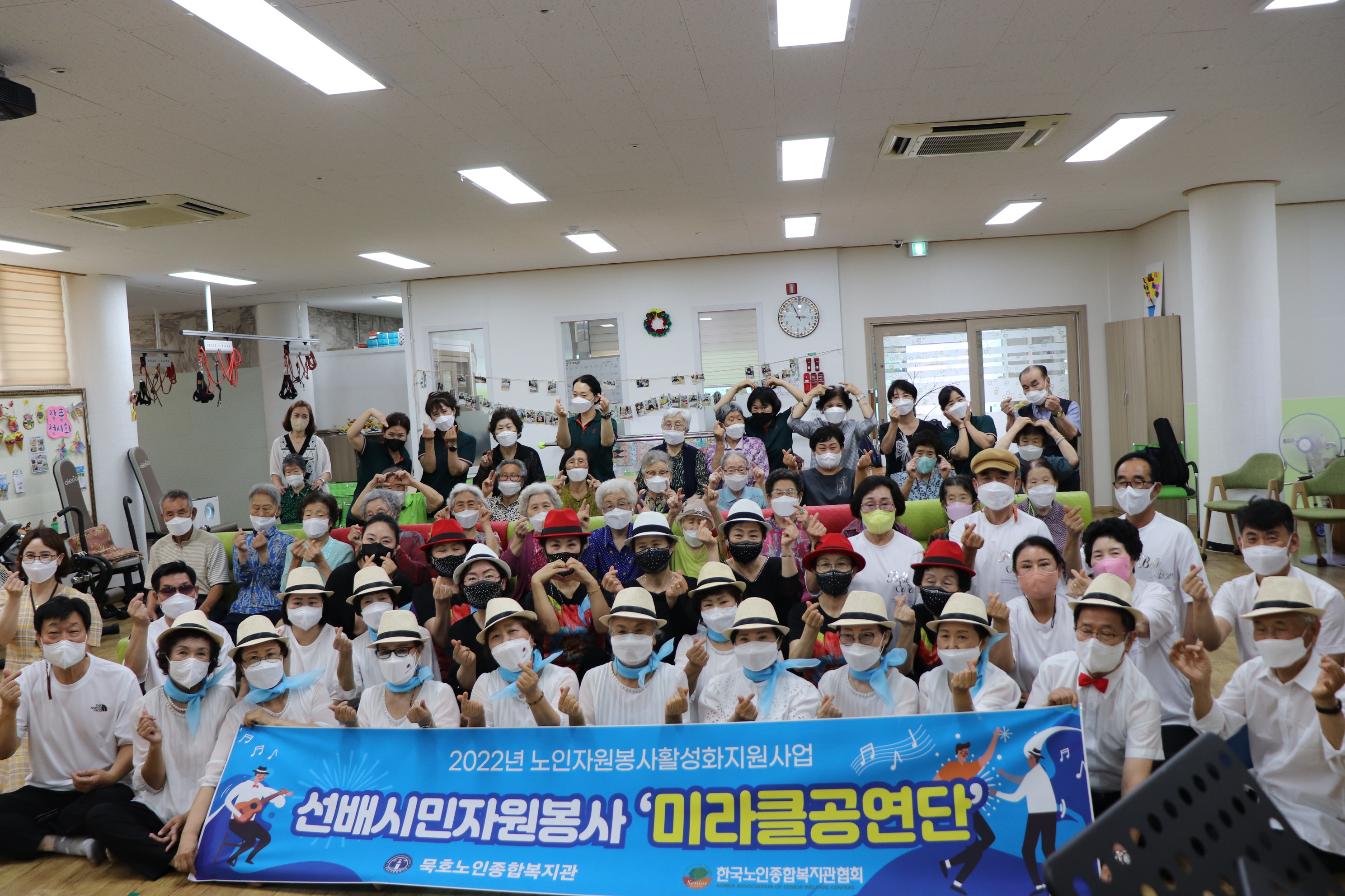 [강원사회복지신문 김종한 기자]=동해 묵호노인종합복지관(관장 염규성)에서 운영하고 있는 '묵호노인종합복지관 미라클공연단'은 지난 7월 15일(금) 14시 동해시 송정동에 소재하고 있는 해오름종합복지센터 주간보호어르신 분들을 위해 센터에 직접 방문하여 공연을 실시하였다. 이번 공연은 선배시민자원봉사자 약 30여명...