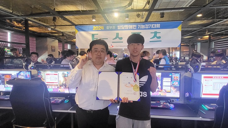 대한불교조계종사회복지재단 홍천군장애인복지관은 지난 6월 26일(수) 춘천에서 열린 2024년 중부권 발달장애인 기능경기대회 e-sports “FC온라인”부문에 참가하여 1위(금상)를 수상하였다. 이 대회에는 총 14명의 참가자가 토너먼트 형식으로 경기를 진행하였으며, 홍천군장애인복지관 소속 허원혁 참가자가 우승을 차지하...