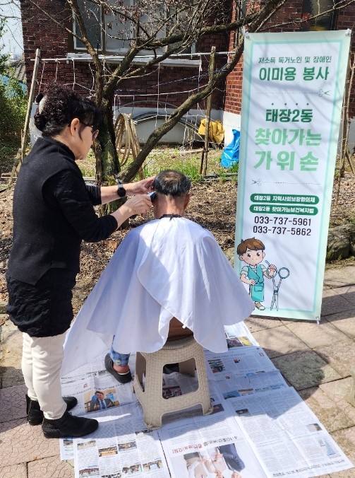 원주시 태장2동 지역사회보장협의체(민간위원장 오원택)는 거동이 불편한 독거 어르신과 장애인 가구를 대상으로 ‘찾아가는 가위손’ 이발 봉사활동을 실시했다. 이날 이발을 마친 독거 어르신은 “다리가 불편하여 바깥 외출이 힘든데 직접 찾아와 머리 손질을 해줘 고맙다.”고 말했다. 한편, ‘찾아가는 가위손’ 자원봉...