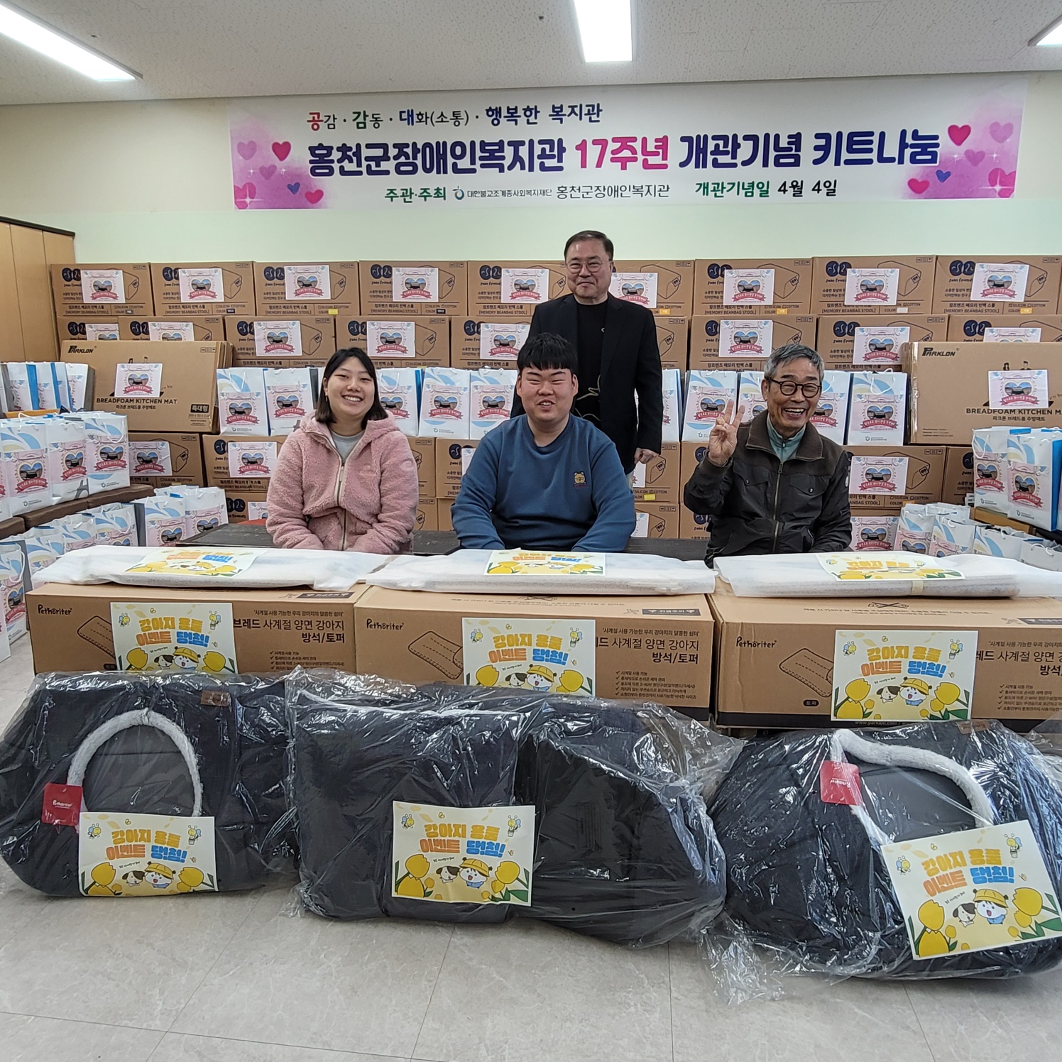 홍천군장애인복지관(관장 허종국)은 지난 4월 4일(목)에 복지관에서 17주년 개관기념 키트나눔 행사 및 4월 이용자 생일파티가 진행되었다. 또한, 사전에 신청 받았던 강아지용품 이벤트에 당첨된 이용자들에게 전달식도 진행되었다. 4월 4일 17주년이 되는 개관기념일을 맞이하여 이용자들에게 전자체온계, 떡국, 화장품, 주...