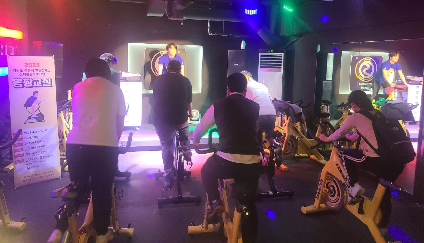 [강원사회복지신문 이정환 기자]='중증발달장애인의 몸과 마음이 튼튼해지는 몸짱교실' 춘천시장애인종합복지관(관장 유미) '몸짱교실'은 '강원특별자치도장애인체육회'의 '생활체육지원사업'에 선정되어 4월부터 10월까지 주2회(월·수) 16~17시 춘천 지역내 강원대학교 근방 '다니엘 스피닝'에서 진행하고 있다. '몸짱교실...