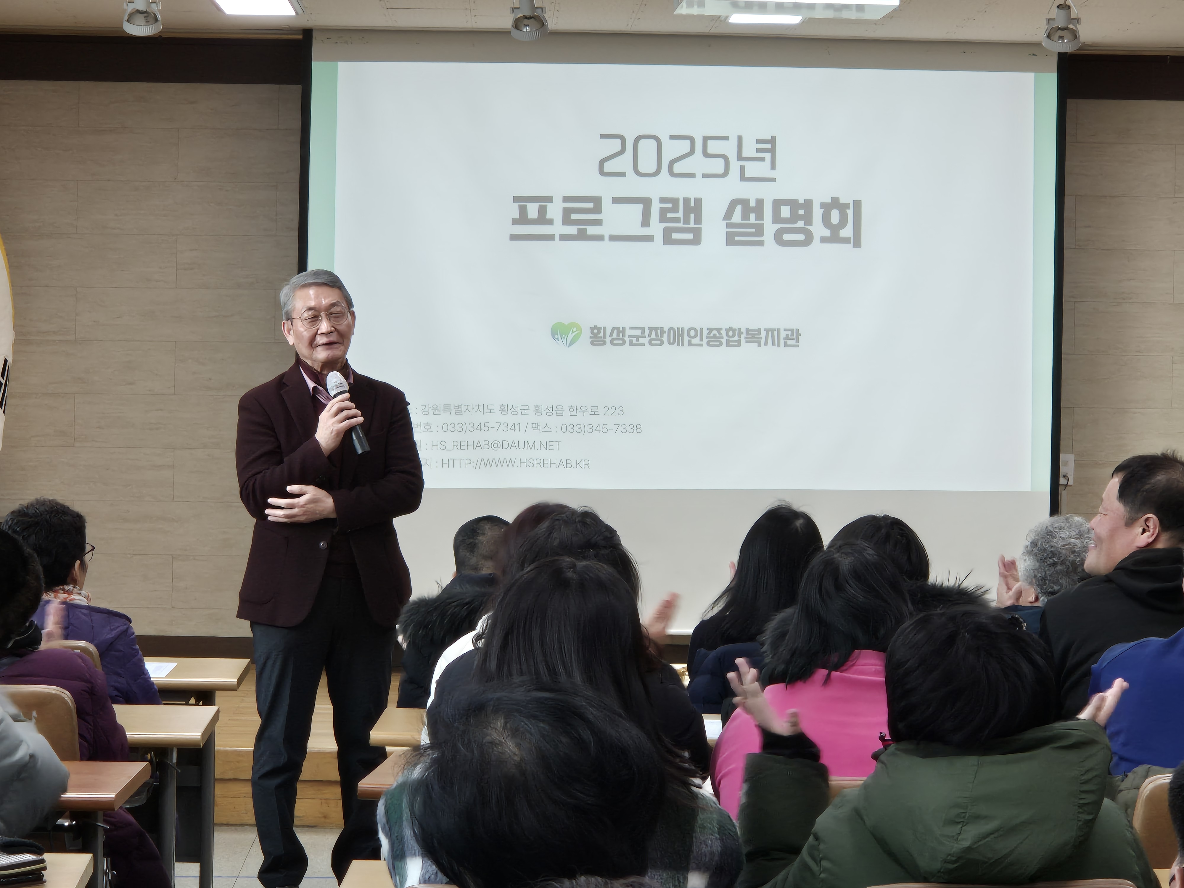 횡성군장애인종합복지관(관장 박성길)은 1월 21일 오전 10시 30분 복지관 강당에서 2025년 프로그램 설명회를 열었다. 이날 행사에는 지난해 만족도 조사 결과로 개설된 문화예술, 평생학습, 스포츠 및 여가활동, 여성장애인복지증진 등 17개 프로그램과 재활운동, 슬링운동, 작업재활, 발달재활서비스 등 재활서비스에 대한...