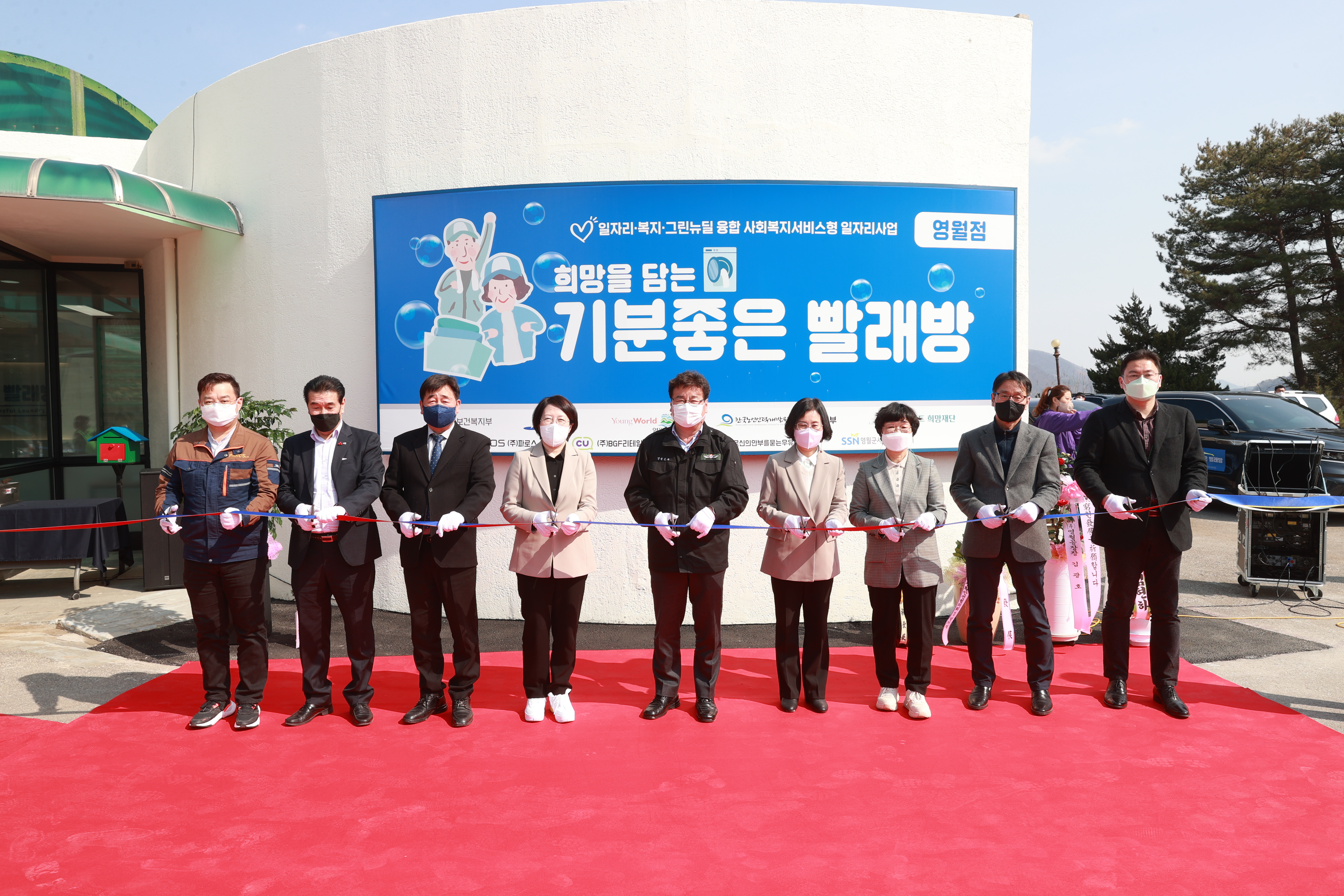 [강원사회복지신문 홍기한 기자]=영월군은 3월 22일(화) 오후2시, 강원도 영월군 주천면에 위치한 기분좋은 빨래방 사업장에서 개소식을 개최했다. 개소식에는 최명서 영월군수, 손경희 영월군의회 의장, 이경희 강원도일자리국장, 심규호 강원랜드사회공헌재단 이사장, 수행기관 영월군사회복지협의회 관계자, 노인일자리 참...
