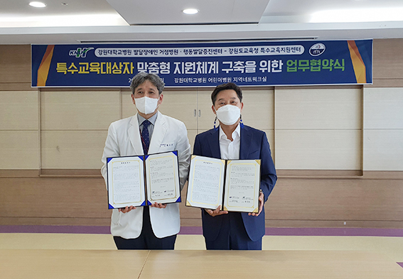 강원특수교육지원센터-강원대학교병원 행동발달증진센터 업무협약 체결 [강원사회복지신문 서은진 기자]=강원특수교육지원센터는 지난 6월 7일(월), 강원대학교병원 행동발달증진센터와 '특수교육대상자 행동중재 지원'을 위한 업무협약을 체결하였다. 이번 업무협약의 주요 내용은 △특수교육대상자의 의료 및 재활 맞춤형 ...