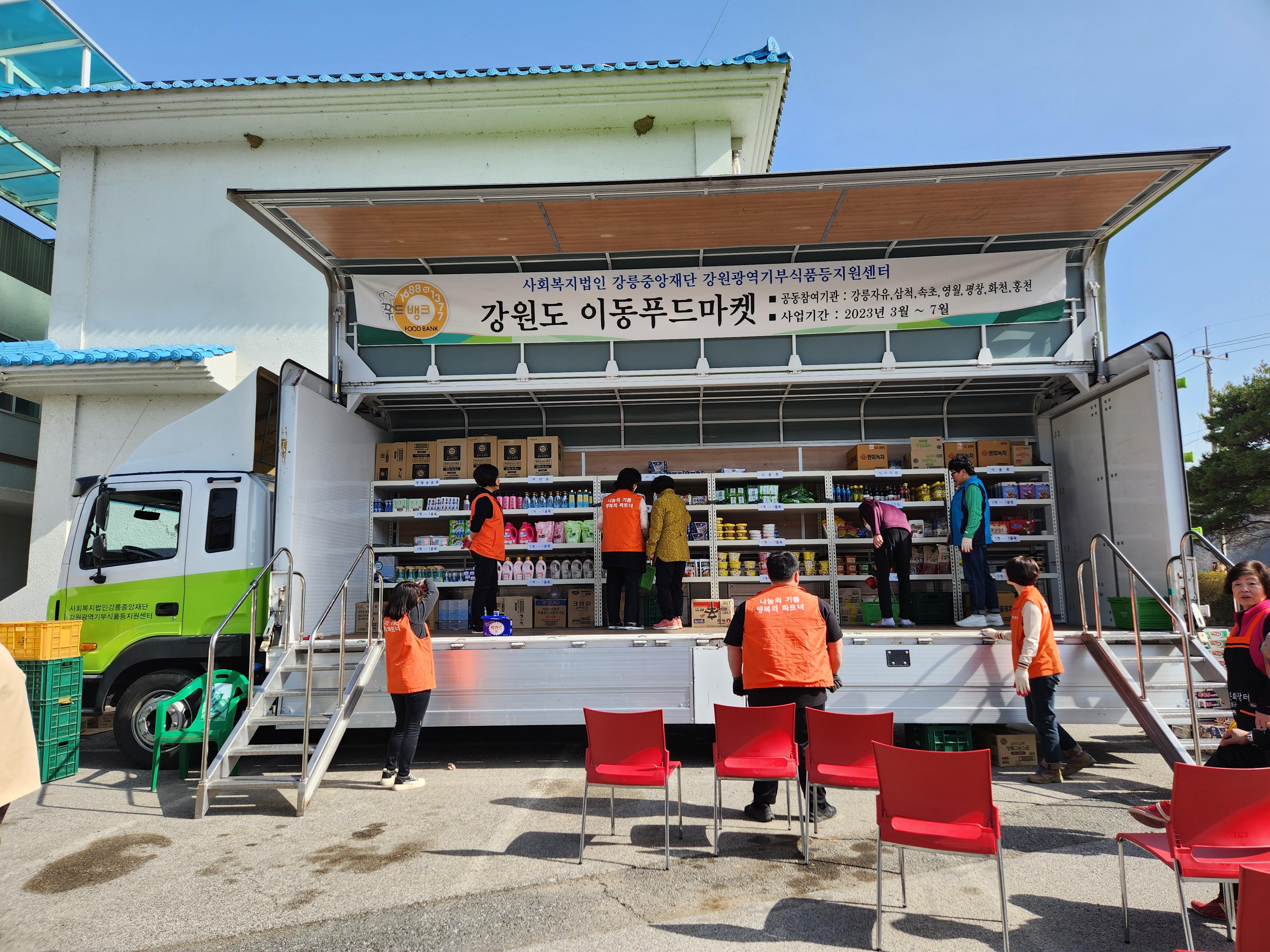 [강원사회복지신문 이정환 기자]=사회복지법인 강릉중앙재단 강원광역기부식품등지원센터(대표 유호성)와 영월기초푸드뱅크(센터장 노인국)는 지난 3월 21일(화) 오후 2시 주천문화회관 주차장에서 '찾아가는 이동푸드마켓'을 운영했다. 이날 행사는 주천사랑봉사회 회장(신명화) 및 회원 20여명과 세명대학교 자원봉사자 6명...