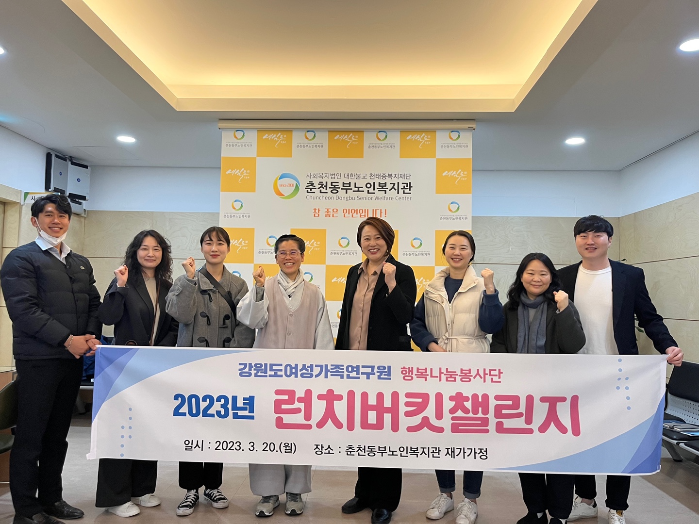 [강원사회복지신문 김도연 기자]=강원도여성가족연구원(원장 김숙영)이 춘천동부노인복지관(관장 종세스님)에서 진행하는 런치버킷챌린지(릴레이 점심도시락 배달 봉사)에 동참했다고 지난 3월 20일 밝혔다. 강원도여성가족연구원은 강원도개발공사의 지목으로 2023년 다섯 번째 주자로서 런치버킷챌린지에 나섰다. 이날 강원...