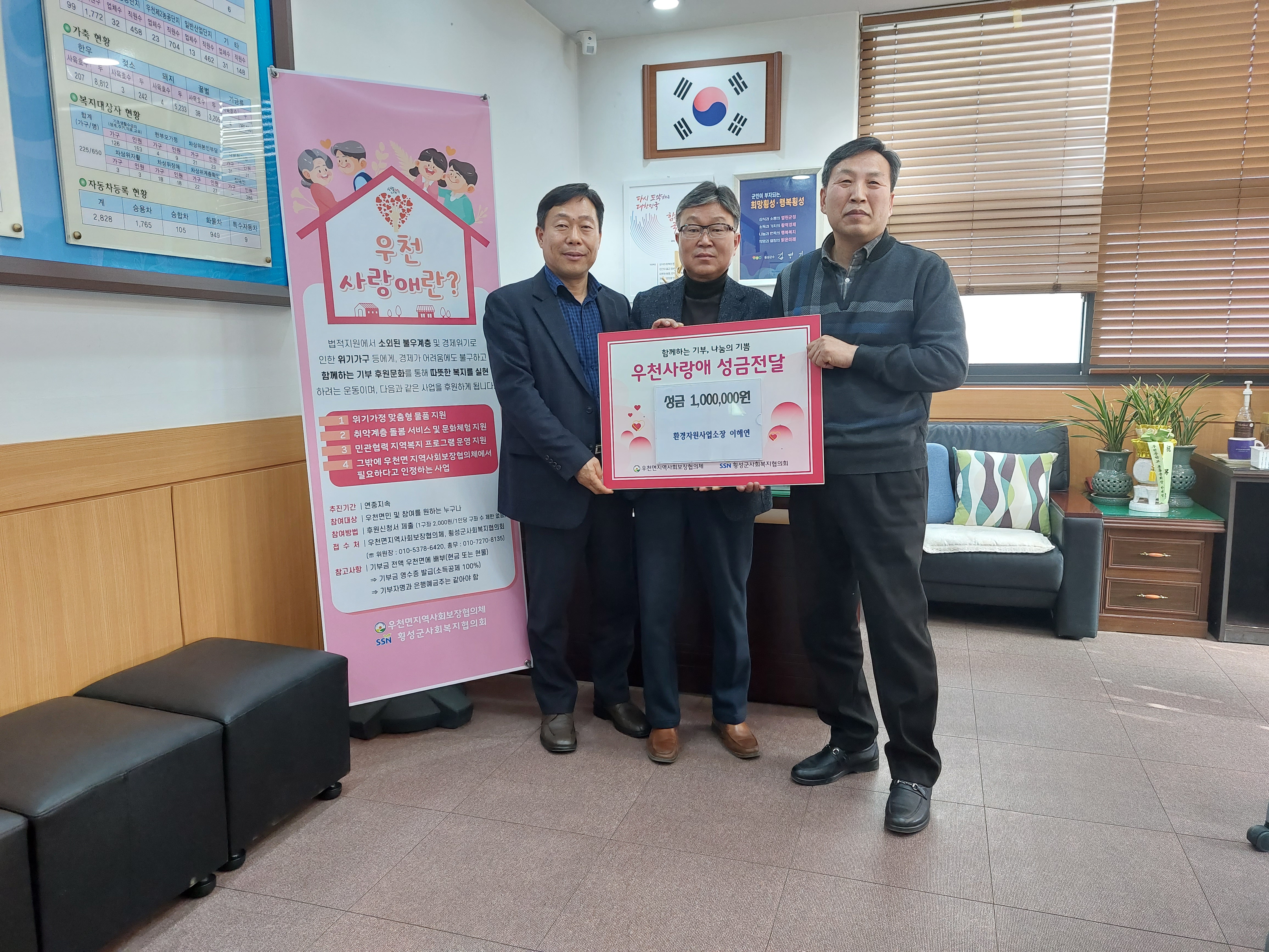 [강원사회복지신문 홍기한 기자]=횡성군 환경자원사업소장(이해연)은 지난 3월 14일 우천면 행정복지센터를 찾아 지난 2월 26일 주택화재로 주택이 완전 전소되어 마을회관에 임시거주하고 있는 김진완 가구에 전달해달라며 100만원을 지정 기탁하였다. 이해연 환경자원사업소장은 2022년 12월 31일까지 우천면장으로 2년간 ...