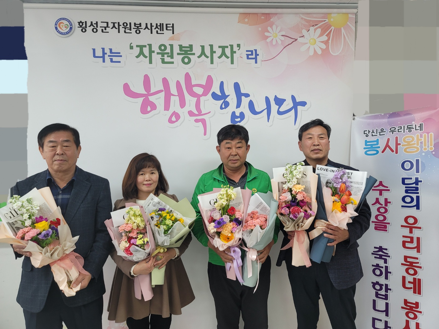 [강원사회복지신문 홍기한 기자]=횡성군자원봉사센터(센터장 한재수)는 3월 우리동네봉사왕(우천면)에 개인으로 백금녀, 단체로는 우천면새마을지도자협의회 (회장 김진완)을 선정하여 3월 15일(수) 횡성군자원봉사센터 사무실에서 '우리동네 봉사왕 시상식'을 가졌다. 개인으로 선정된 백금녀 봉사자는 이동세탁지원, 도시락...
