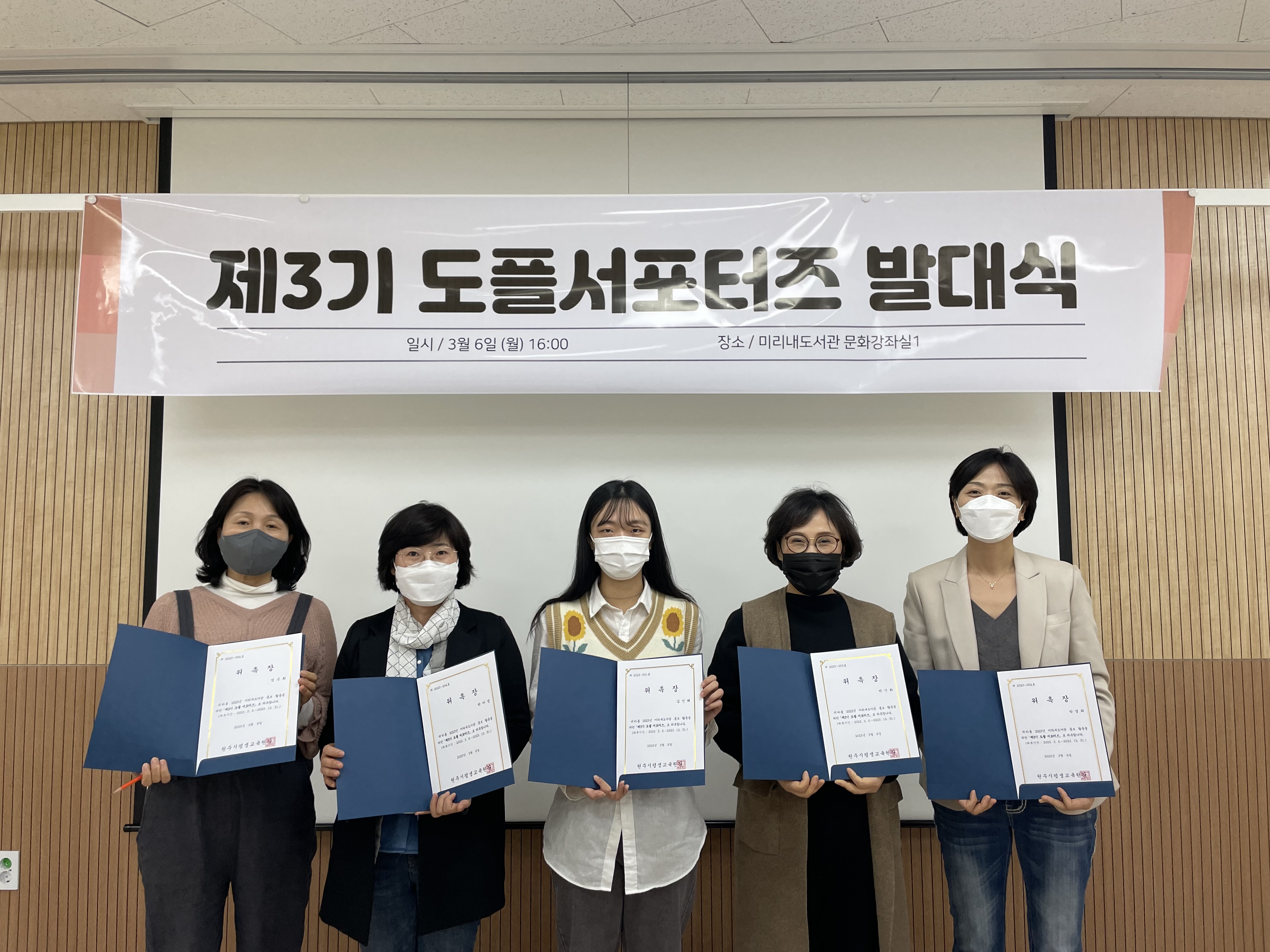[강원사회복지신문 홍기한 기자]=공개모집 통해 서포터즈 7명 선발 온·오프라인에서 도서관의 다양한 소식을 취재·홍보 원주 미리내도서관은 지난 3월 6일 문화강좌실에서 제3기 도플 서포터즈 발대식을 갖고 본격적인 활동을 시작했다. 도플 서포터즈는 '도서관 +(플러스) 친구'의 줄임말로, 도서관과 함께하는 친구로서 ...