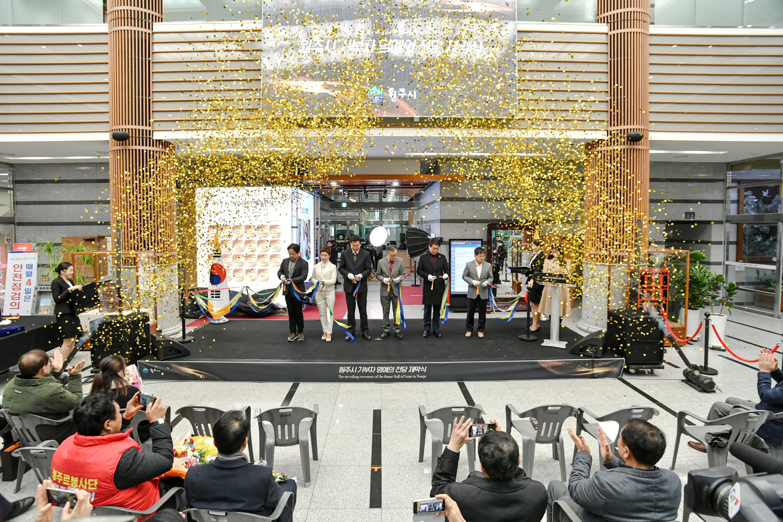 원주시는 지난 2월 5일 시청 1층 로비에서 지역사회를 위해 나눔 활동을 실천하는 기부자들에 대한 예우와 아름다운 기부문화를 공유하기 위해 '원주시 기부자 명예의 전당 제막식'을 개최했다. 원강수 원주시장과 김기홍 강원도의회 부의장, 최미옥 원주시의회 부의장, 유계식 강원사회복지공동모금회장, 박만호 원주시사회...