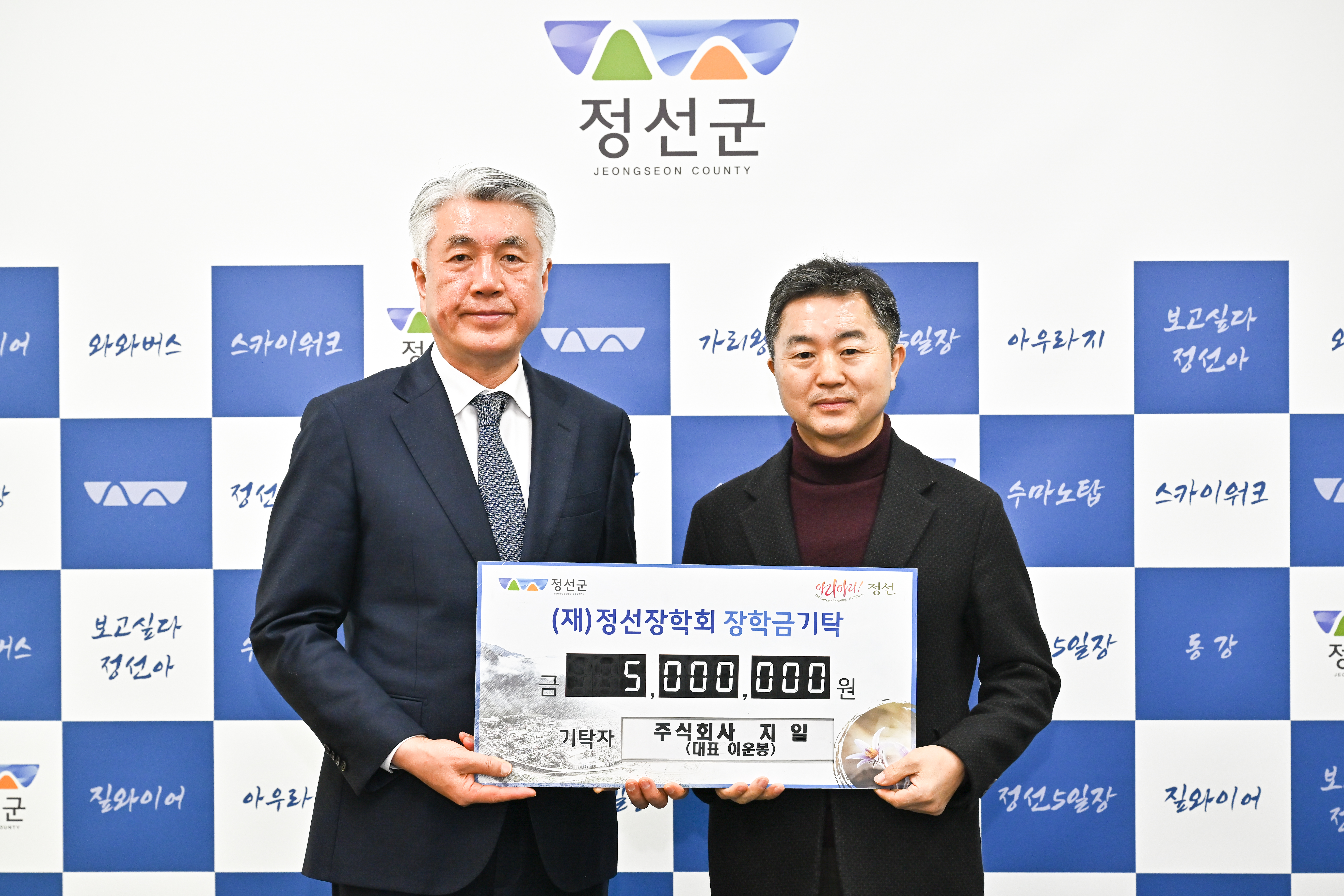[강원사회복지신문 김도연 기자]=(주)지일(대표 이운봉)은 지난 3월 2일 (재)정선장학회에 장학금 500만원을 기탁했다.