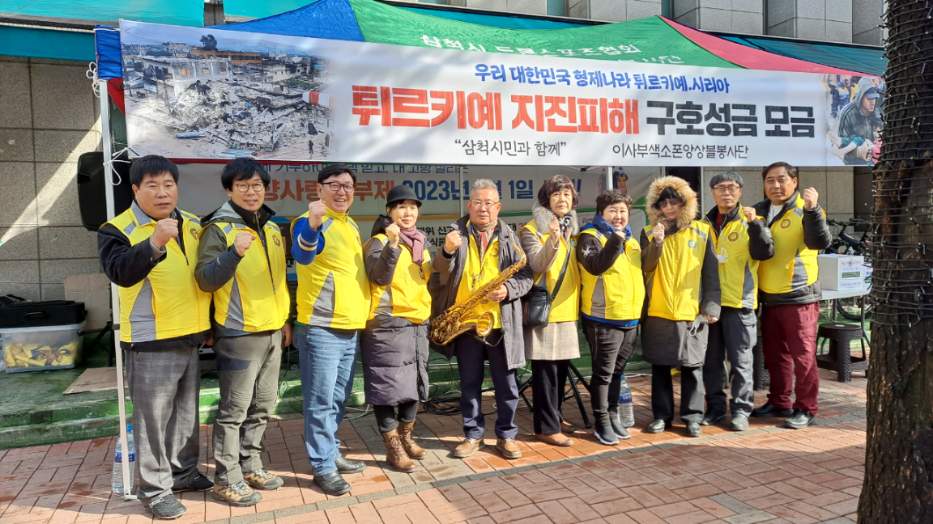 [강원사회복지신문 홍기한 기자]=지난 2월 6일 튀르키예 동남부와 시리아에 발생한 지진피해 구호성금 모금을 위해 '삼척이사부색소폰앙상블동호회'에서 이틀간 색소폰 앙상블 버스킹 공연을 진행하였다. '삼척이사부색소폰앙상블동호회'는 지난 2월 28일 삼척시청을 방문하여 해당 공연으로 모인 구호성금 1,501,710원을 기...