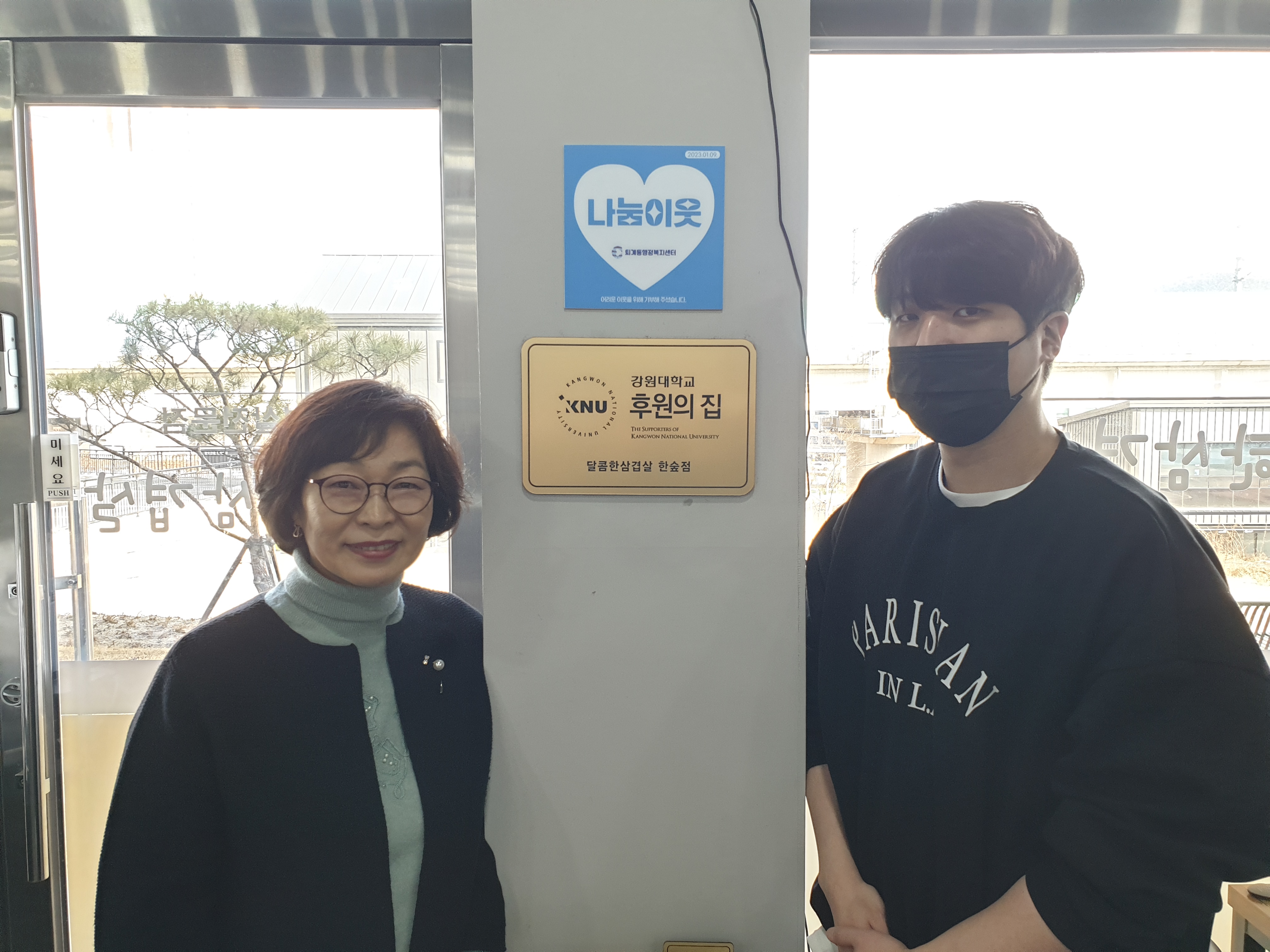 [강원사회복지신문 홍기한 기자]=춘천시 퇴계동 행정복지센터(동장 윤행자)는 지난 2월 14일 나눔이웃 실천을 위해 김치를 기부한 달콤한삼겹살(한숲점, 대표 김윤재)에 나눔이웃 현판을 전달했다.