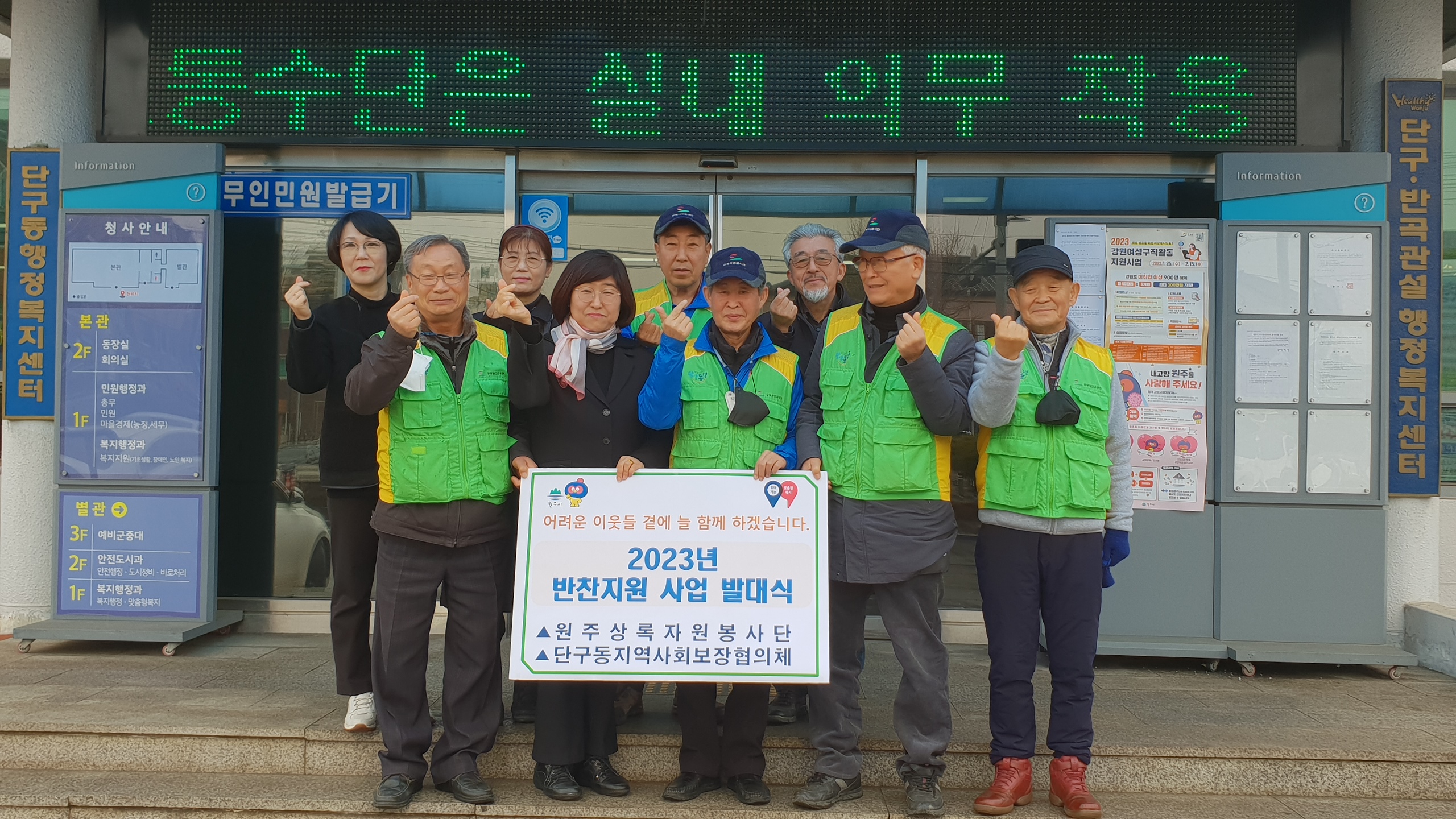 [강원사회복지신문 김도연 기자]=원주시 단구동지역사회보장협의체(위원장 이정우, 최민식)와 원주상록자원봉사단(단장 신흥균)은 지난 2월 10일 단구동 행정복지센터에서 2023년 취약계층 반찬 지원 사업 발대식을 진행했다. 취약계층 반찬 지원 사업은 매주 금요일 독거노인 및 장애인 세대 10가구를 방문해 반찬을 전달하...