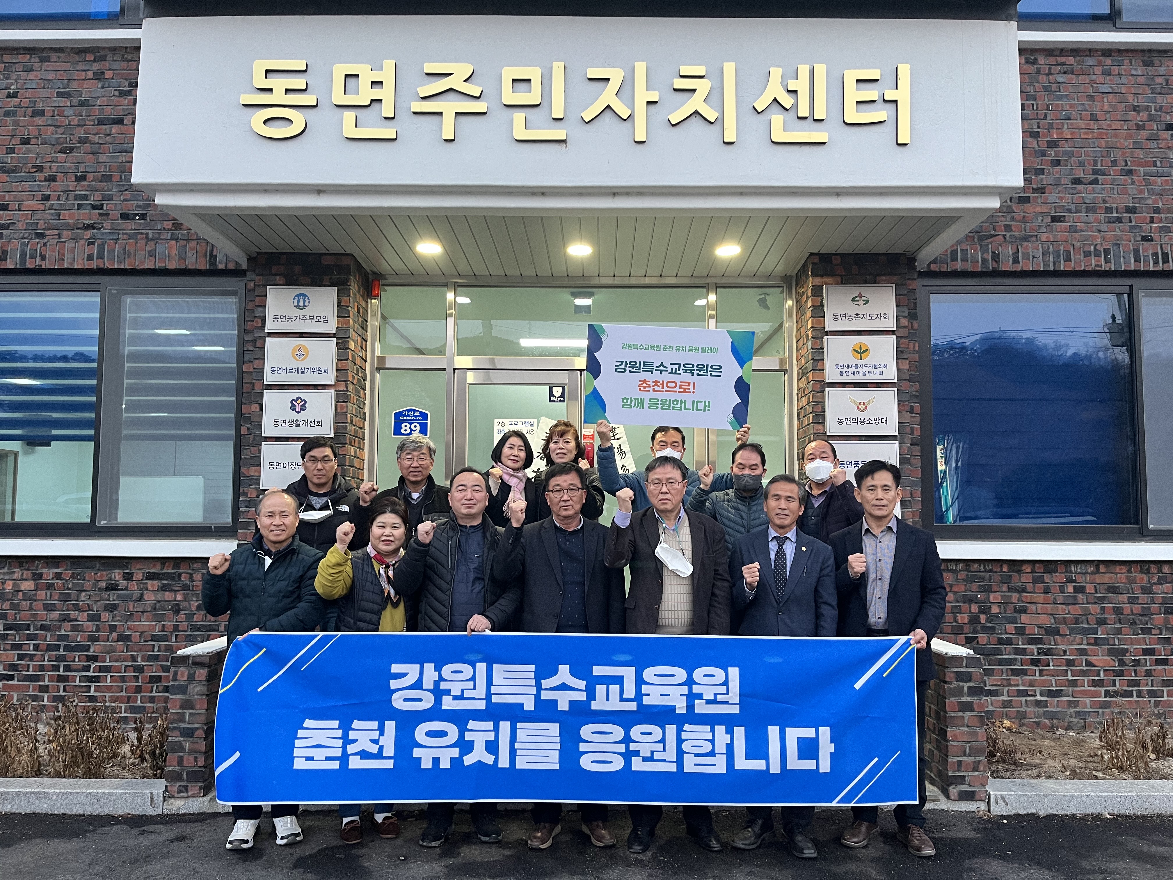 [강원사회복지신문 김도연 기자]=춘천시 동면 주민자치위원회(위원장:안상헌)는 지난 2월 10일 강원특수교육원 춘천 유치를 위한 응원 릴레이 캠페인에 동참했다.