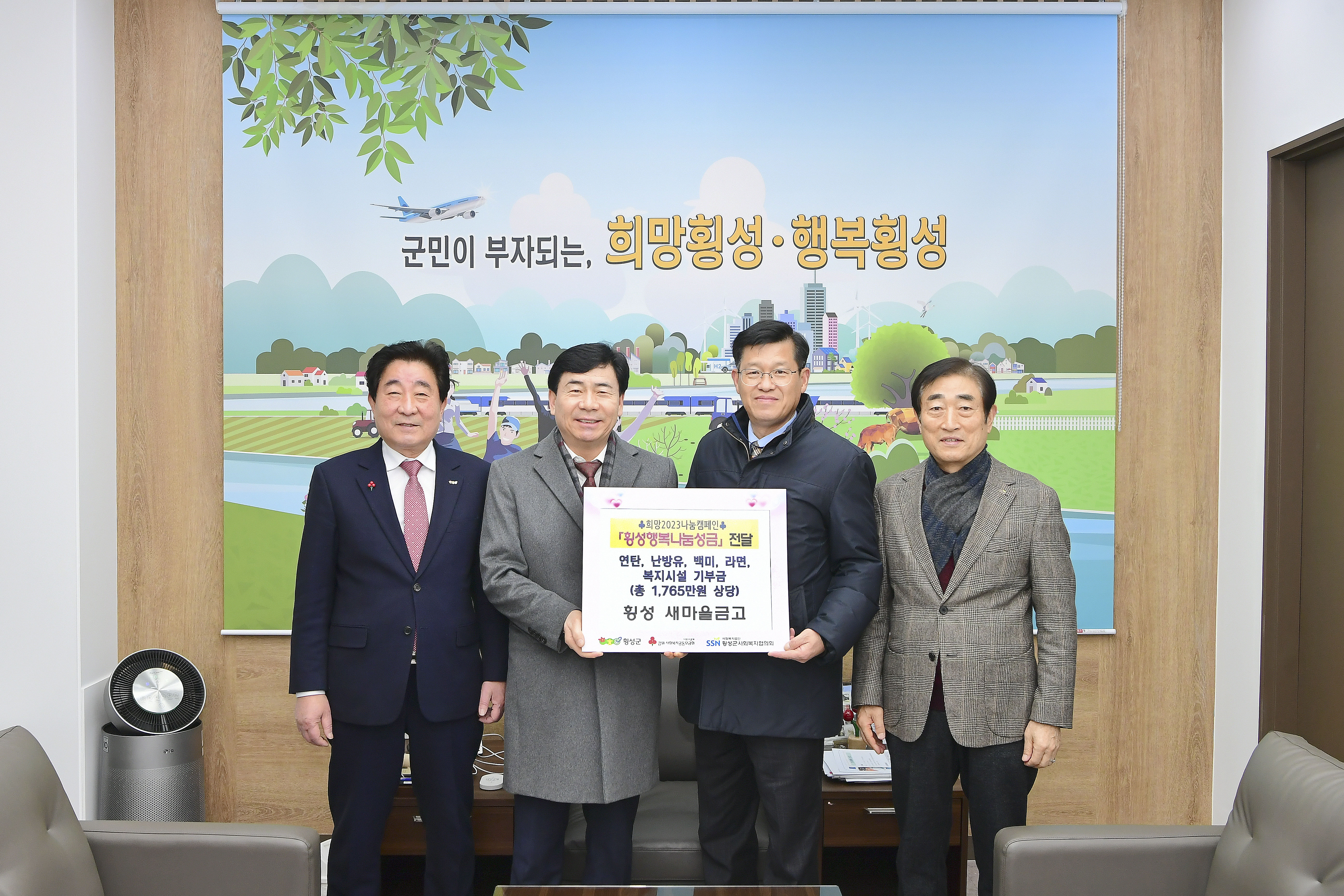 [강원사회복지신문 홍기한 기자]=횡성새마을금고(이사장 박덕식)는 지난 2월 8일 횡성군청 군수집무실을 방문, 연탄, 난방유, 백미, 라면, 복지시설 기부금 등 총 1,765만원 상당의 성품을 기탁했다.