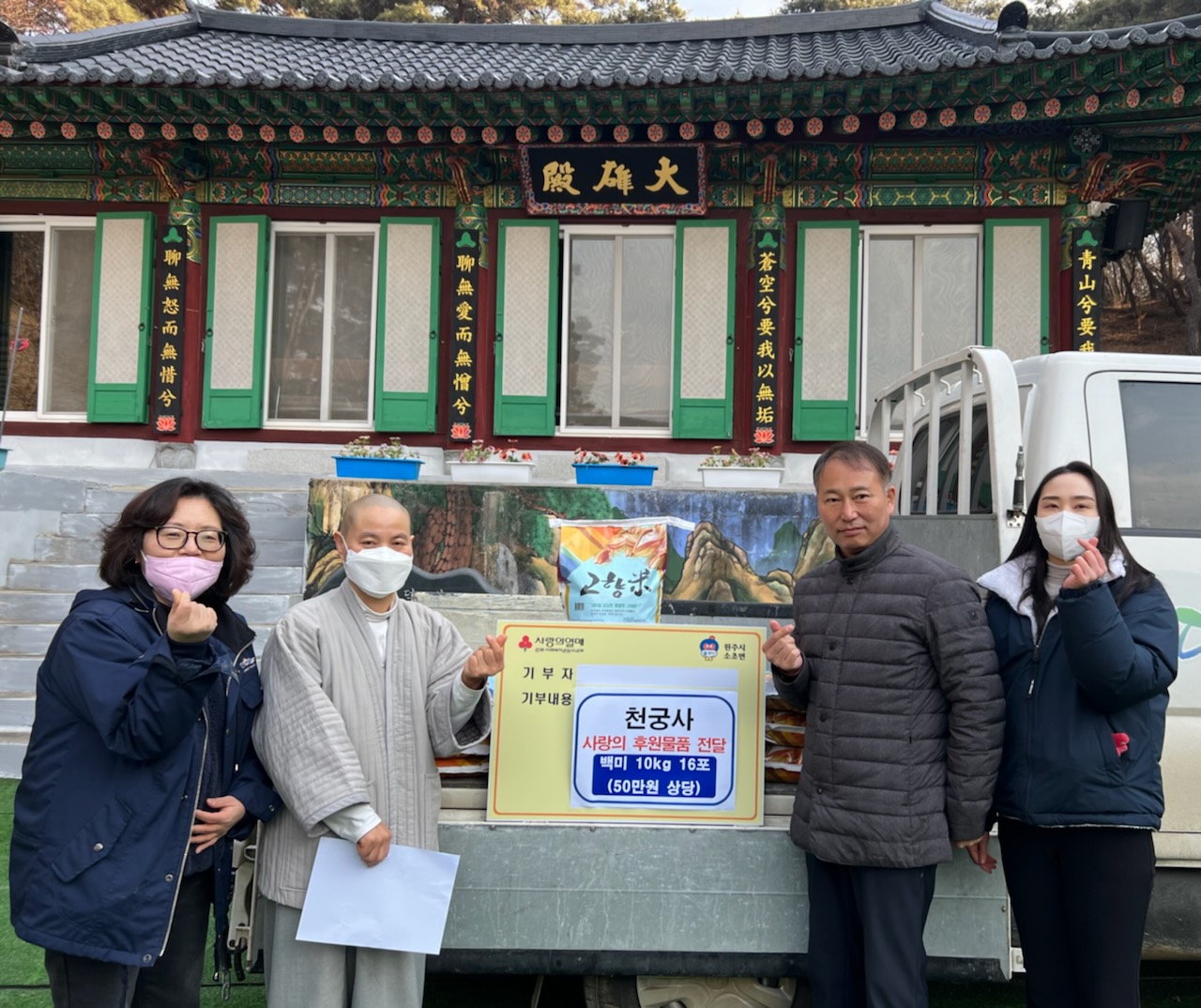 [강원사회복지신문 서은진 기자]=원주시 소초면 소재 천궁사(주지스님 정휴)는 지난 2월 7일 관내 저소득층을 위해 백미 10㎏ 16포를 기부했다. 이번에 전달받은 백미는 관내 기초수급자, 차상위계층, 사각지대 위기가구 등 어려운 이웃에게 전달될 예정이다. 김용환 소초면장은 "관내 저소득층을 위해 매번 후원품을 기부해...