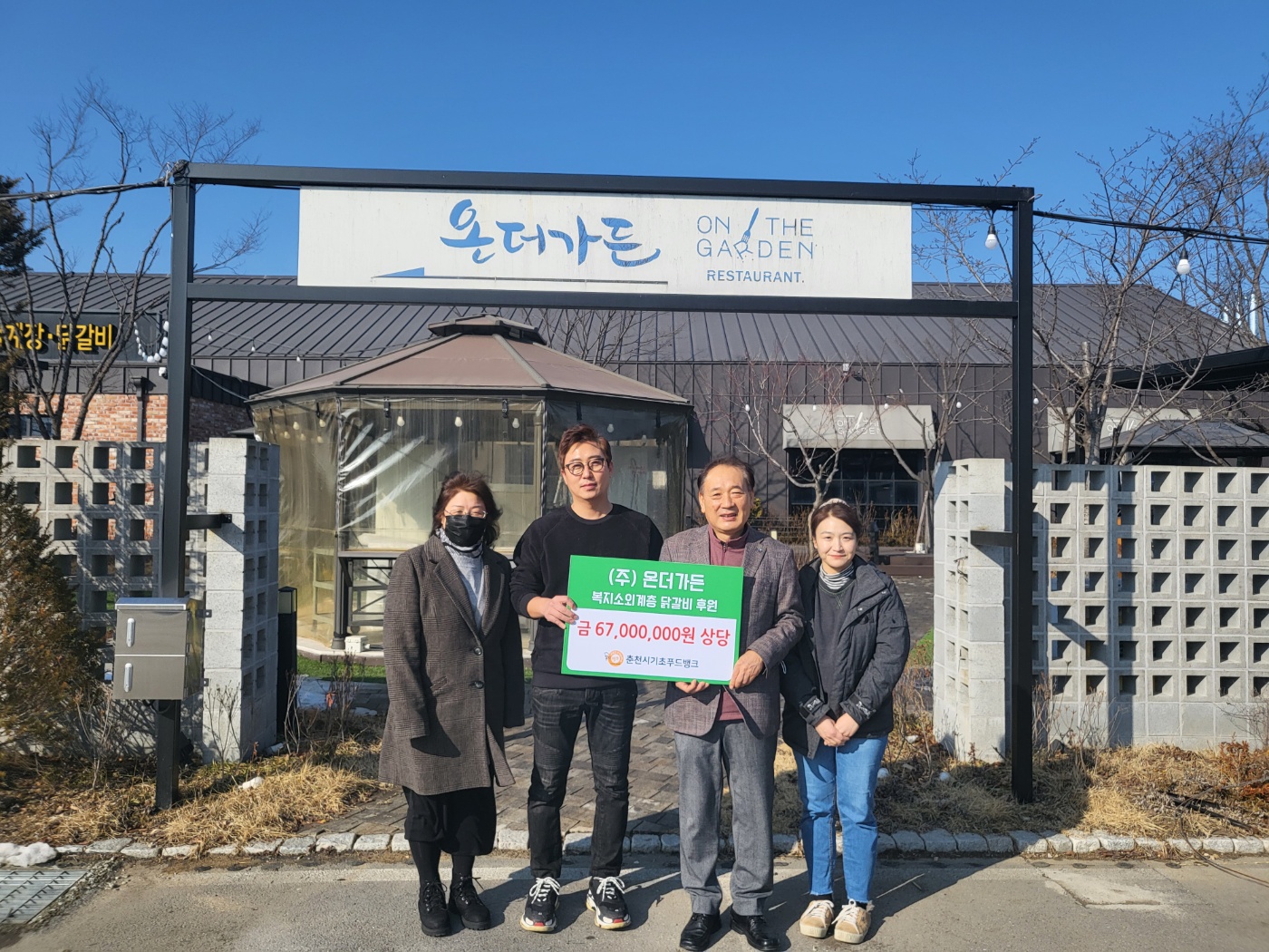 [강원사회복지신문 김도연 기자]='(주)온더가든(대표 최순헌)'은 지난 2월 7일(목) 춘천시 지역 내 취약계층 및 저소득층을 위해 춘천시기초푸드뱅크(뱅크장 신두진)에 닭갈비(6700만원 상당)을 후원하여 전달식을 가졌다. '(주)온더가든'에서 후원한 닭갈비는 푸드뱅크를 이용하고 있는 저소득 소외계층 및 지역사회 사회복...