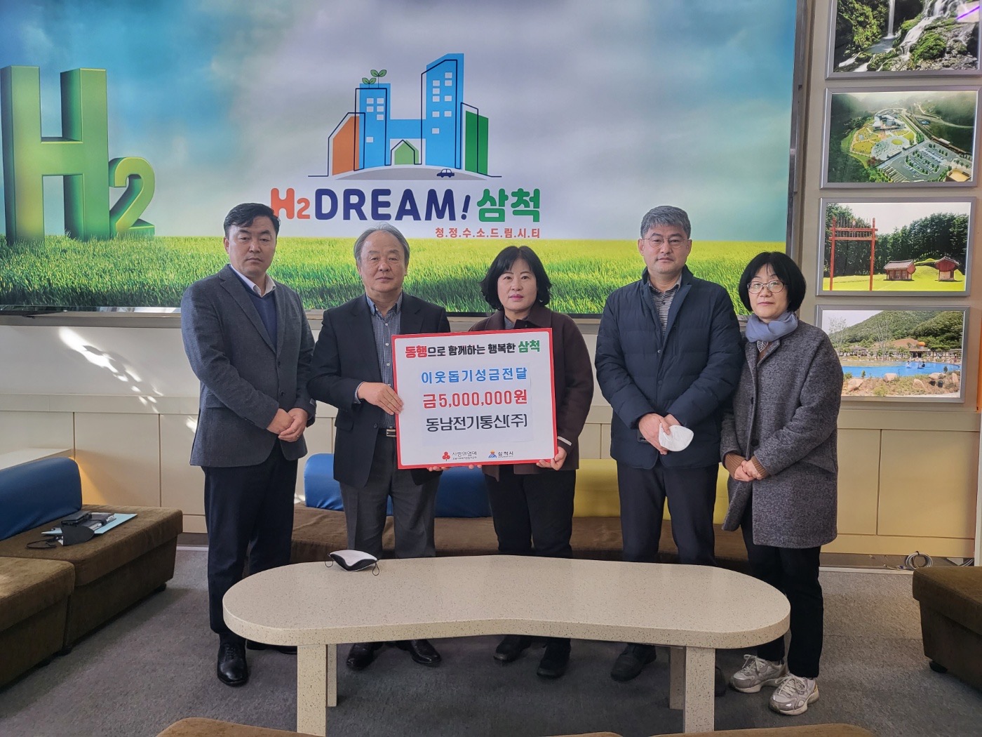 [강원사회복지신문 김도연 기자]=동남전기통신 주식회사(최승효 대표)는 지난 2월 2일 삼척시청을 방문하여 삼척시 내 어려운 이웃을 위해 써달라며 이웃돕기 성금으로 5백만 원을 기탁했다.