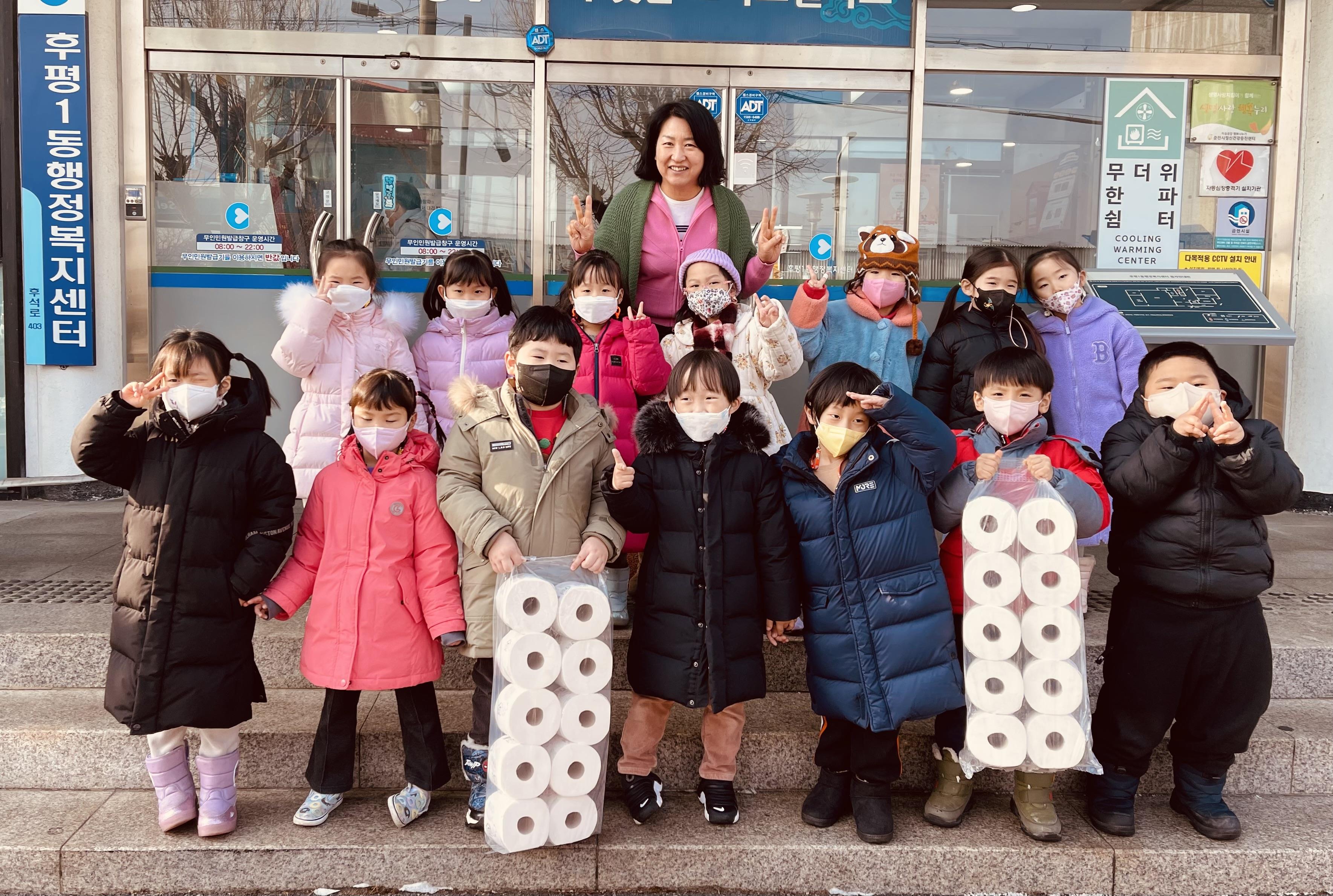 [강원사회복지신문 이정환 기자]=춘천시 후평1동 사회문화어린이집 아이들은 지난 2월 1일 후평1동 행정복지센터를 방문해 그동안 직접 정리 수거한 우유팩을 가지고 재생 화장지와 교환했다.