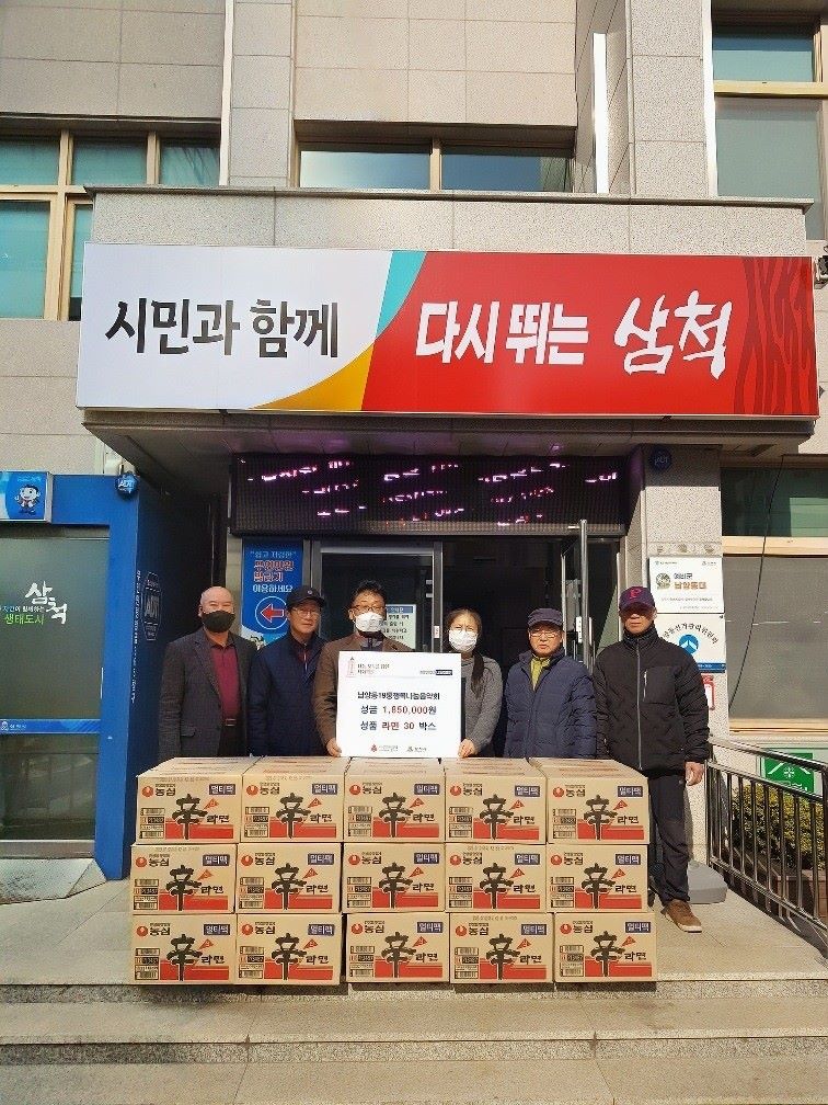 [강원사회복지신문 이정환 기자]=삼척시 남양19통 주민들은 지난 1월 28일 남양19통 마을회관에서 진행한 '남양동19통 행복나눔음악회 행사'를 통해 모은 2023희망나눔 성금 185만 원과 라면 30박스를 지난 1월 31일(화) 남양동행정복지센터에 기탁하였다.