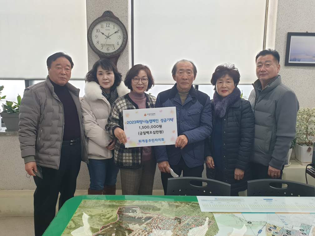 [강원사회복지신문 김도연 기자]=춘천시 퇴계동 주민자치회(회장 김대규)에서는 지난 1월 27일 저소득층 지원을 위해 성금 150만원을 춘천시 퇴계동행정복지센터(동장 윤행자)에 기탁했다.