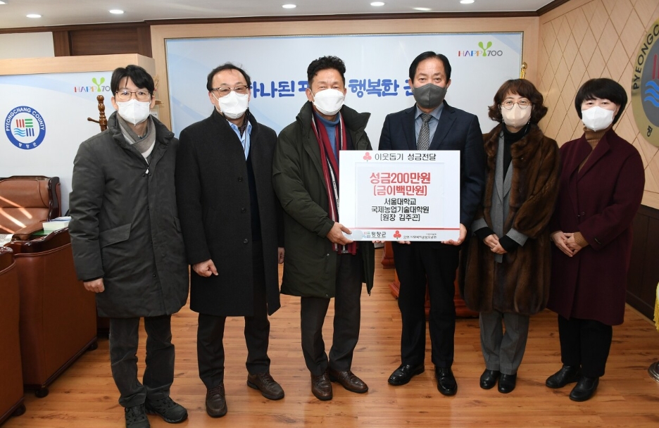 [강원사회복지신문 이정환 기자]=서울대학교 국제농업기술대학원(원장 김주곤)은 지난 1월 20일 평창군에 '희망 2023 나눔캠페인에 성금' 200만원을 기탁하였다.