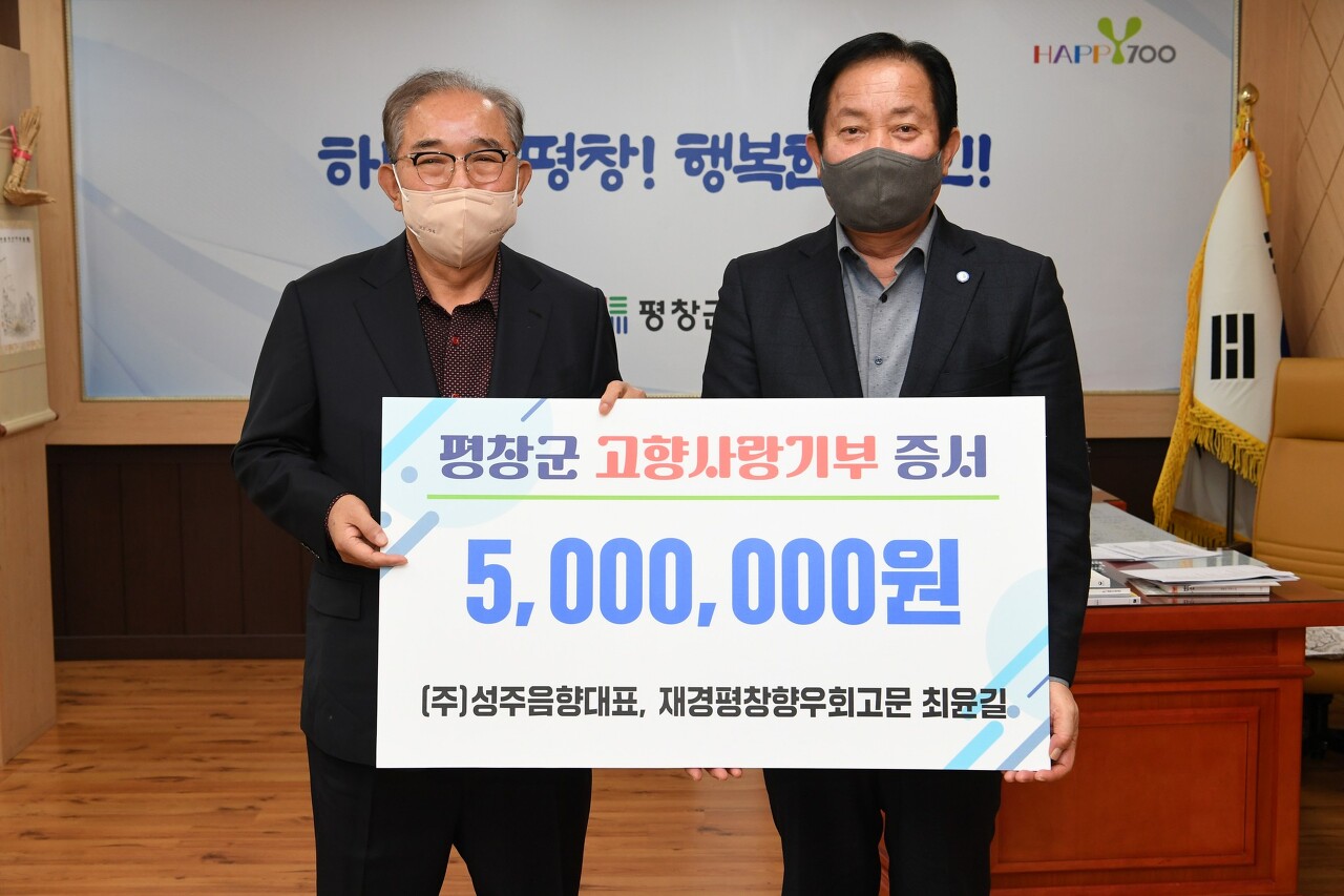 [강원사회복지신문 김종한 기자]=평창군 고향사랑기부제 첫 고액 기부자는 수원에서 사업체를 운영하고 평창향우회 고문을 맡고 있는 평창이 고향이신 (주)성주음향 최윤길 대표이사이다. 최윤길 대표이사는 "고향 평창군에 늘 남다른 애정을 가지고 있으며 지역발전을 위해 기부도 하고, 답례품으로 지역 농특산물을 받을 수...