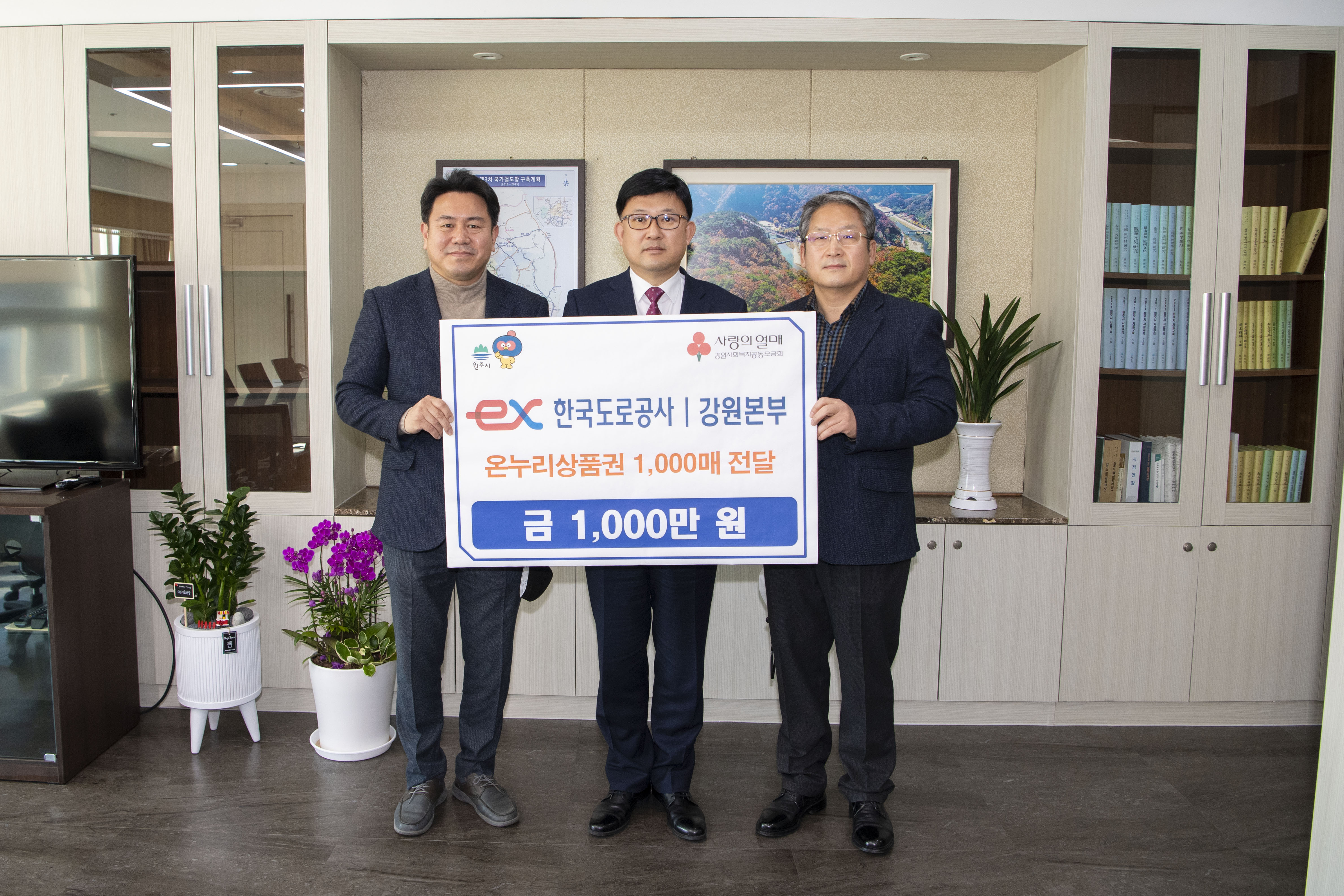 [강원사회복지신문 서은진 기자]=한국도로공사 강원본부(본부장 신용석)는 지난 1월 20일 원주시청 부시장 집무실을 방문해 온누리상품권 1,000만 원을 기부했다. 후원품은 사회복지공동모금회를 통해 원주시 소재 사회복지기관 5개소에 전달될 예정이다. 한국도로공사 강원본부 관계자는 "코로나19 장기화 등으로 모두가 어...