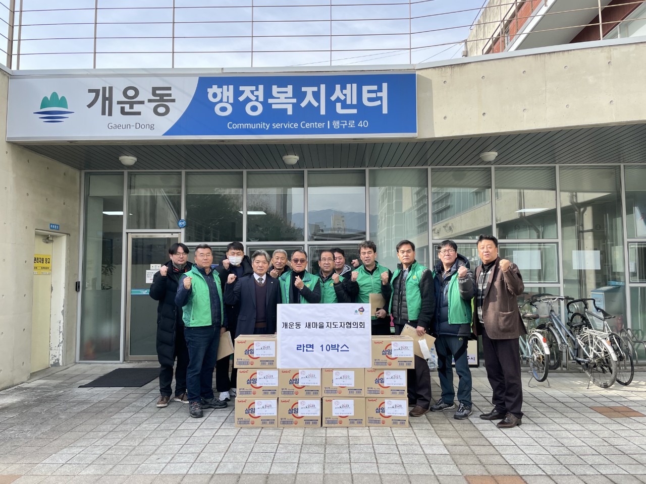 [강원사회복지신문 홍기한 기자]=원주시 개운동 새마을지도자협의회(회장 송중길)는 지난 1월 19일 설 명절을 맞아 원주시 개운동 행정복지센터에 라면 10박스를 전달했다.