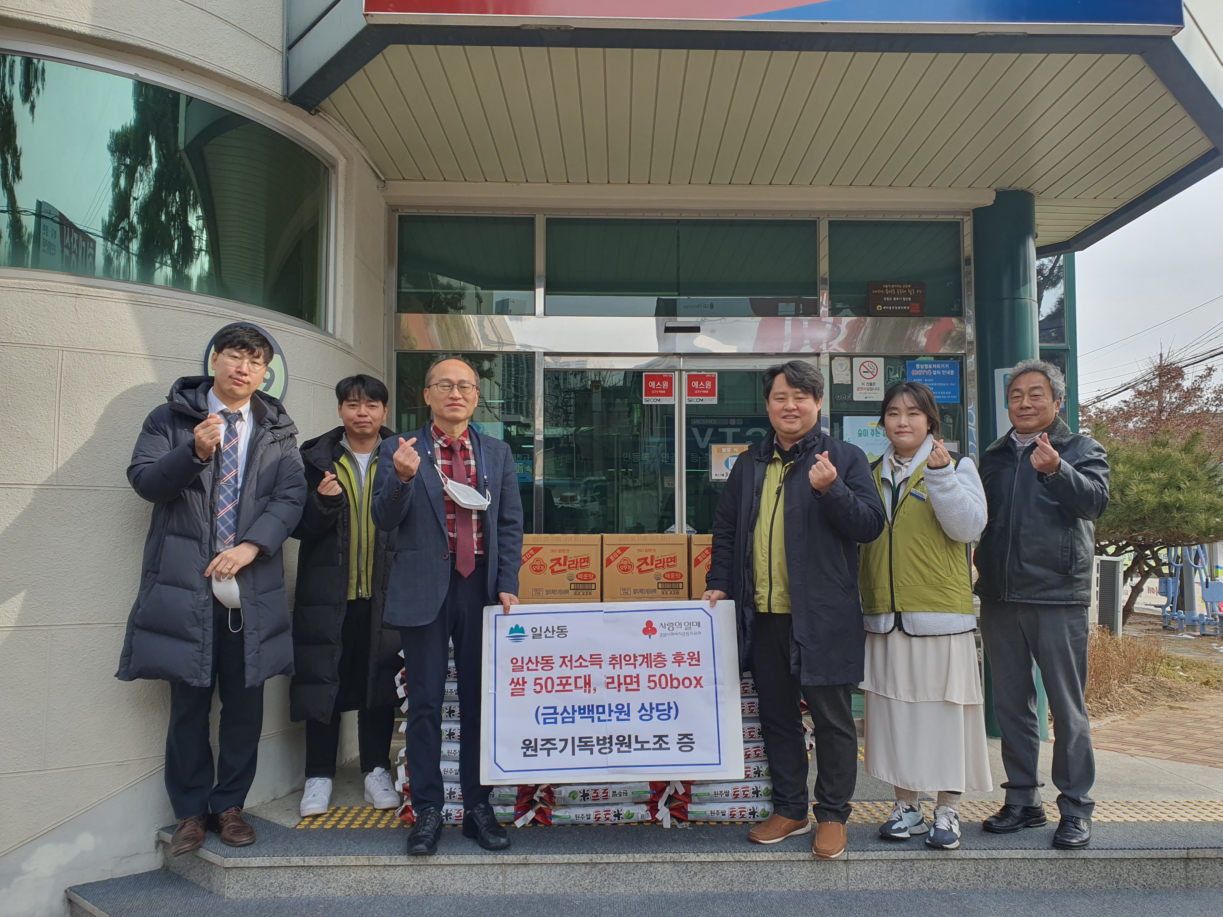 [강원사회복지신문 홍기한 기자]=연세대학교 원주연세의료원지부(지부장 김현태)는 지난 1월 19일 원주시 일산동 행정복지센터를 방문해 300만 원 상당의 백미 10㎏ 50포와 라면 50상자를 전달했다. 김현태 지부장은 "어려운 이웃들이 후원품을 받고 조금이나마 따뜻한 설 명절을 보냈으면 좋겠다."라며, "앞으로도 이웃사랑...