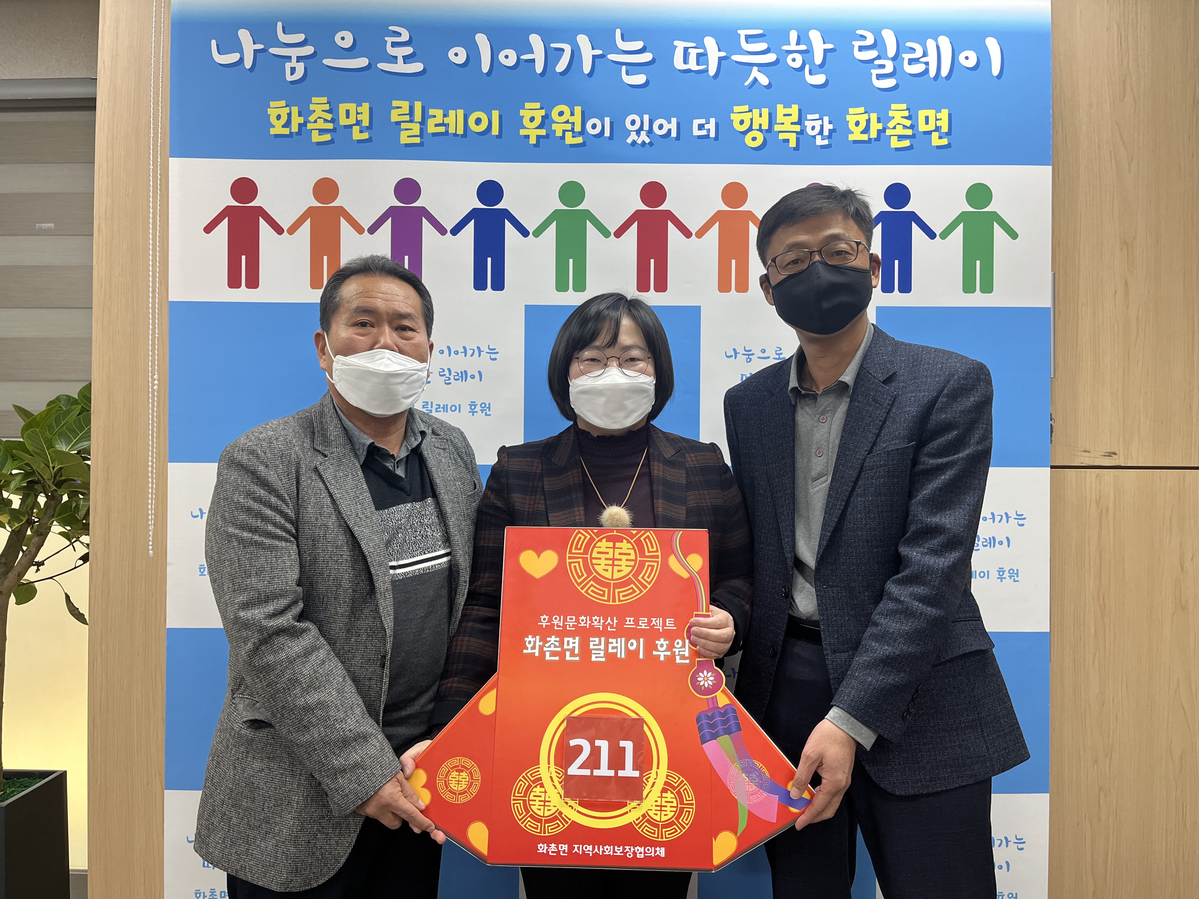 [강원사회복지신문 홍기한 기자]=홍천군 화촌면 지역사회보장협의체에서 후원문화 확산을 위해 진행 중인 '화촌면 릴레이 후원'에 온정의 손길이 끊이지 않고 있다. 이미애 화촌농협 전무는 지난 1월 12일 화촌면행정복지센터를 방문해 ‘화촌면 릴레이 후원’의 211번째 주자로 참여했다. 이미애 전무는 "설 명절을 맞아 지...