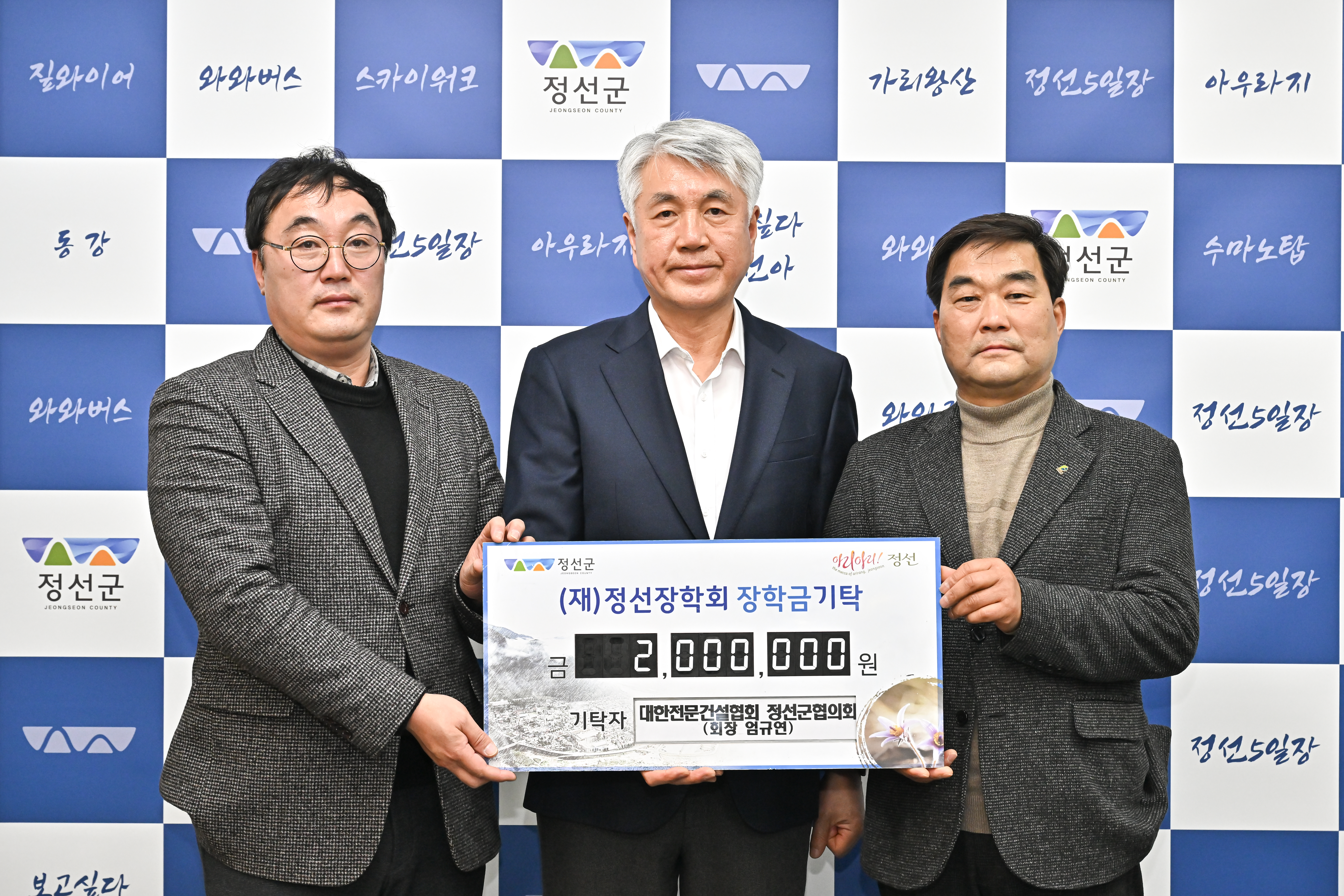 [강원사회복지신문 서은진 기자]=대한전문건설협회 정선군협의회(회장 엄규연)는 지난 1월 9일 정선군에 장학금 2백만원을 기탁했다.