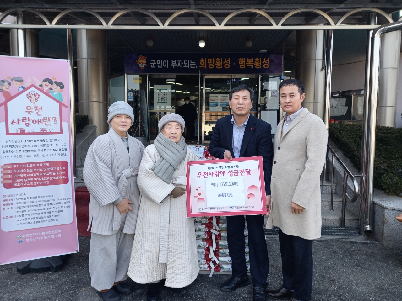 (주)대규건설(대표 이상승) 대법사 우천면 새마을지도자협의회(회장 김진완) 하궁1리 전민석 [강원사회복지신문 홍기한 기자]=횡성군 우천면에서는 설명절을 맞아 불우이웃돕기 성금 및 물품후원이 이어지고 있다. 지난 1월 5일 우천면 새마을지도자협의회(회장 김진완)에서 성금50만원, 하궁1리 전민석님이 강원상품권 50만...