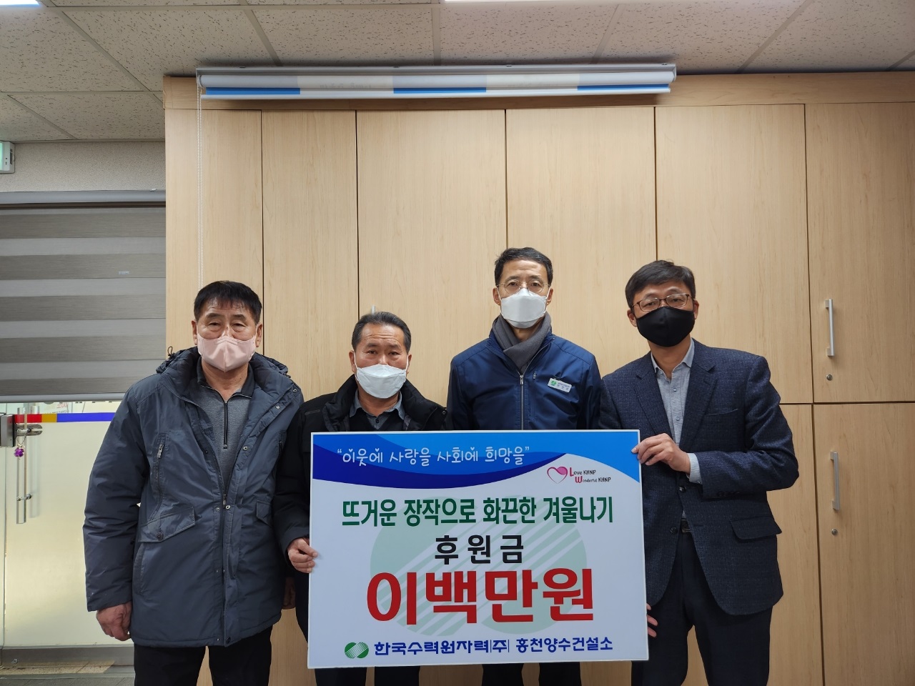 [강원사회복지신문 서은진 기자]=한국수력원자력(주) 홍천양수건설소(소장 전전우)는 지난 1월 4일 화촌면행정복지센터를 방문해 어려운 이웃을 위한 난방용 장작 15톤(200만원 상당)을 기부했다. 전전우 소장은 "지속되는 한파로 몸과 마음이 지쳐있는 이웃에게 도움이 되고자 기부를 하게 됐다"며, "앞으로도 따뜻한 지역사...