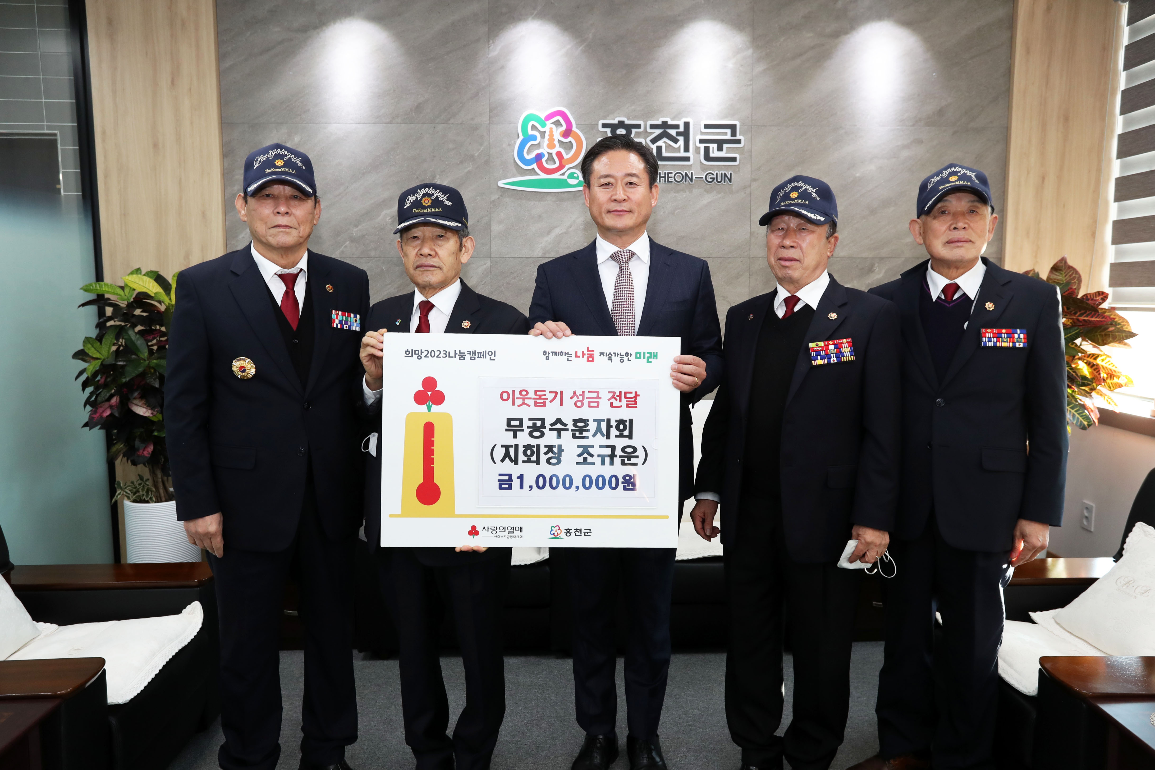 [강원사회복지신문 홍기한 기자]=대한민국무공수훈자회 홍천군지회(지회장 조규운)는 지난 1월 3일 홍천군청을 방문해 '희망2023나눔캠페인' 성금 100만원을 기탁했다. 조규운 지회장은 "올 겨울 유난히 추운 날씨로 어려움을 겪고 있을 이웃들에게 조금이나마 보탬이 되고자 회원들의 뜻을 모아 성금을 준비했다"고 말했다....
