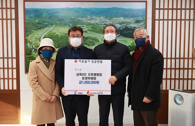 [강원사회복지신문 김도연 기자]=영월군 삼옥3리 오토캠핑장 운영위원회(대표 장순녀)는 지난 12월 29일 영월군청을 방문해 희망2023나눔캠페인 연말성금 1백만원을 기탁했다.