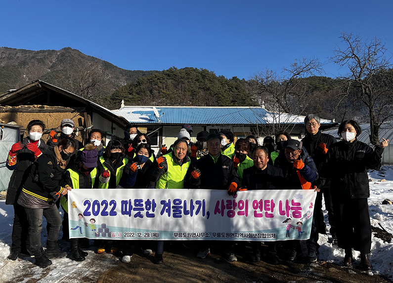 [강원사회복지신문 김도연 기자]=영월군 무릉도원면사무소(면장 유영주) 직원과 무릉도원면지역 사회보장협의체(위원장 김동준) 회원 20여 명은 지난 12월 29일 무릉도원면의 독거노인 등 취약계층 3가구에 3천장의 연탄 나눔행사를 진행했다.