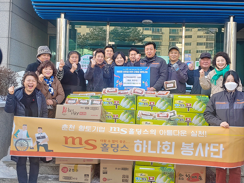 [강원사회복지신문 홍기한 기자]=춘천시 근화동 MS홀딩스 하나회봉사단(대표 이원복)에서는 지난 12월 19일 동절기를 맞아 불우이웃을 위해 지원해달라며 김장김치(500가구 분량)를 춘천시 근화동행정복지센터에 기탁하였다.