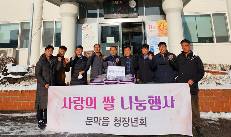 [강원사회복지신문 김도연 기자]=원주시 문막읍 청장년회(회장 안재홍)는 지난 12월 16일 문막읍 행정복지센터에백미 10㎏ 60포를 전달했다. 26명의 회원으로 구성된 문막읍 청장년회는 지역 경로잔치 봉사활동을 비롯해 저소득층을 위한 쌀·연탄 나눔 등 이웃사랑을 꾸준히 실천하고 있어 지역사회의 귀감이 되고 있다. 안...