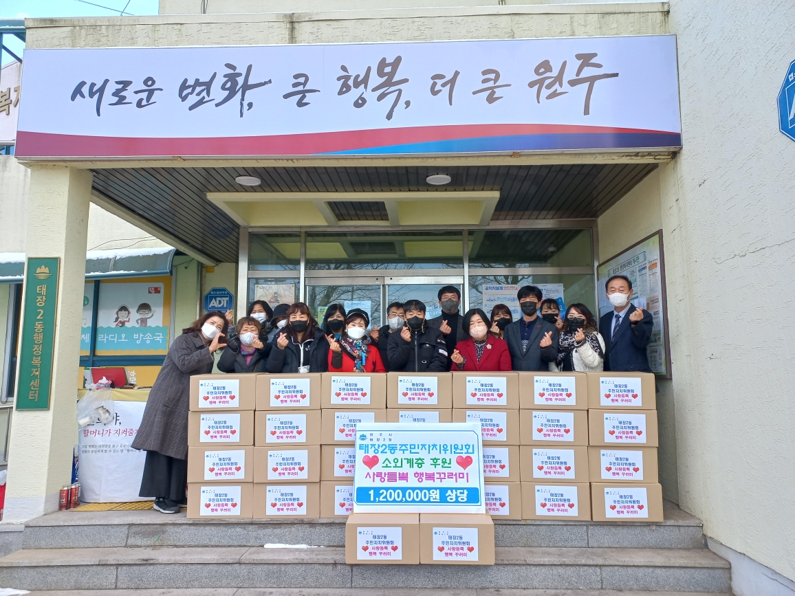 [강원사회복지신문 김도연 기자]=원주시 태장2동 주민자치위원회(위원장 이강모)는 지난 12월 19일 120만 원 상당의 식료품 꾸러미 30박스를 태장2동 행정복지센터에 전달했다. 이강모 위원장은 "추운 계절에 이웃들과 조금이라도 따뜻한 마음을 함께 나누고자 꾸러미를 준비해 전달하게 됐다."라며, "앞으로도 소외계층을 위...