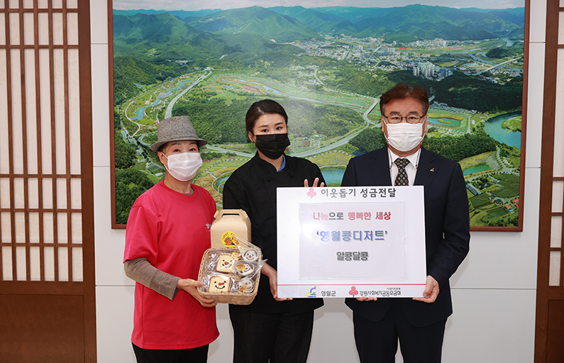[강원사회복지신문 이정환 기자]=영월콩으로 만든 다양한 디저트를 제작 판매하고 있는 빵집인 '알콩달콩(대표 최보연)'은 지난 12월 19일 영월군청을 방문해 관내 아동계층을 위해 '콩디저트'를 기탁했다. 최보연 대표는 "디저트를 전달받을 관내 아동들에게 작은 행복이 되길 바란다."며 "앞으로 관내 어려운 저소득 아동 ...