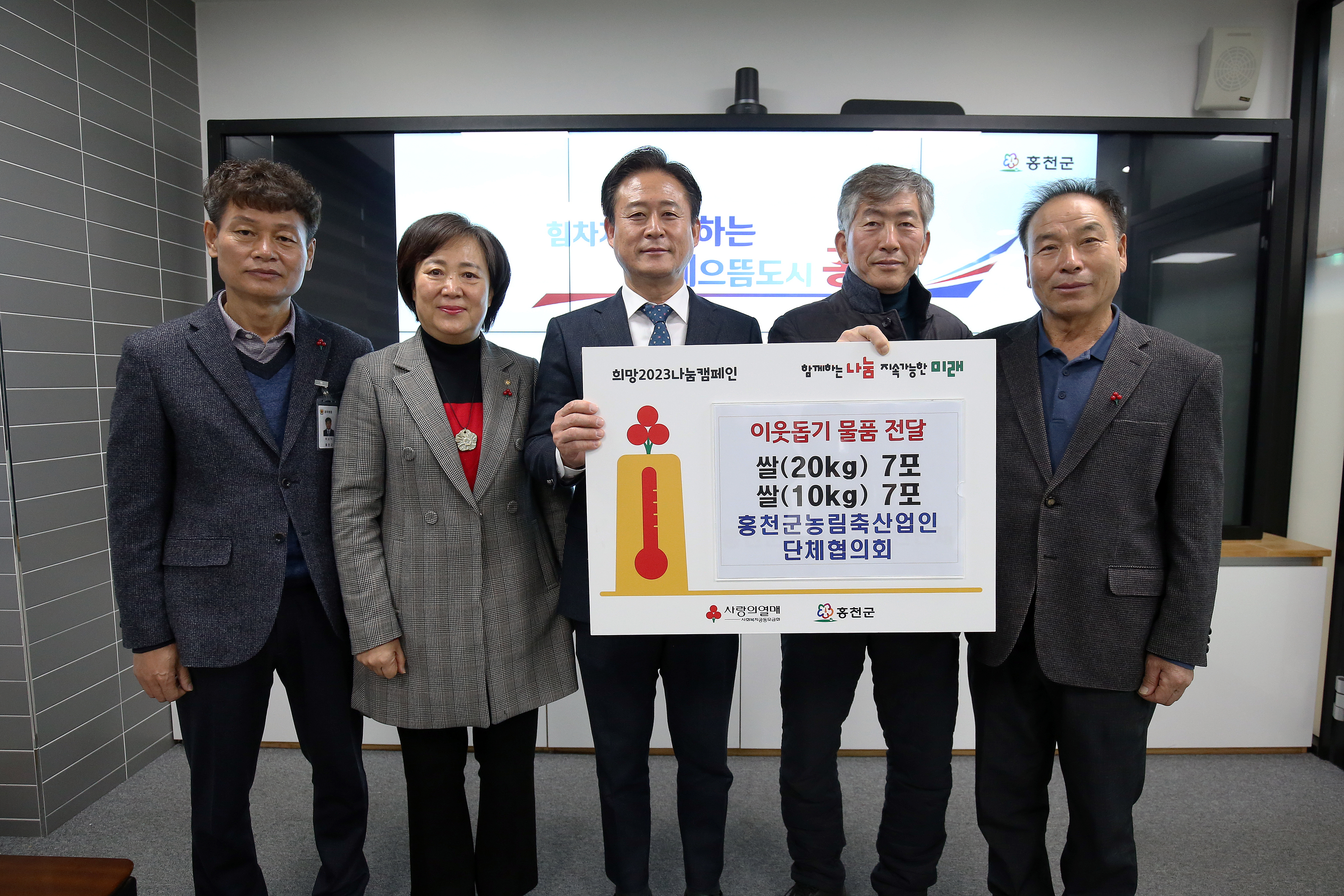 [강원사회복지신문 홍기한 기자]=홍천군농림축산업인단체협의회(홍천군 농민회장 정종민)는 지난 12월 9일 홍천군청을 방문, '희망2023나눔캠페인'에 동참하여 쌀 10kg과 20kg 각 7포씩을 기탁했다. 기탁된 쌀은 홍천군 관내 저소득층 및 독거노인 가구에 전달될 예정이다. 정종민 회장은 “연말을 맞아 어려운 이웃에게 조금...