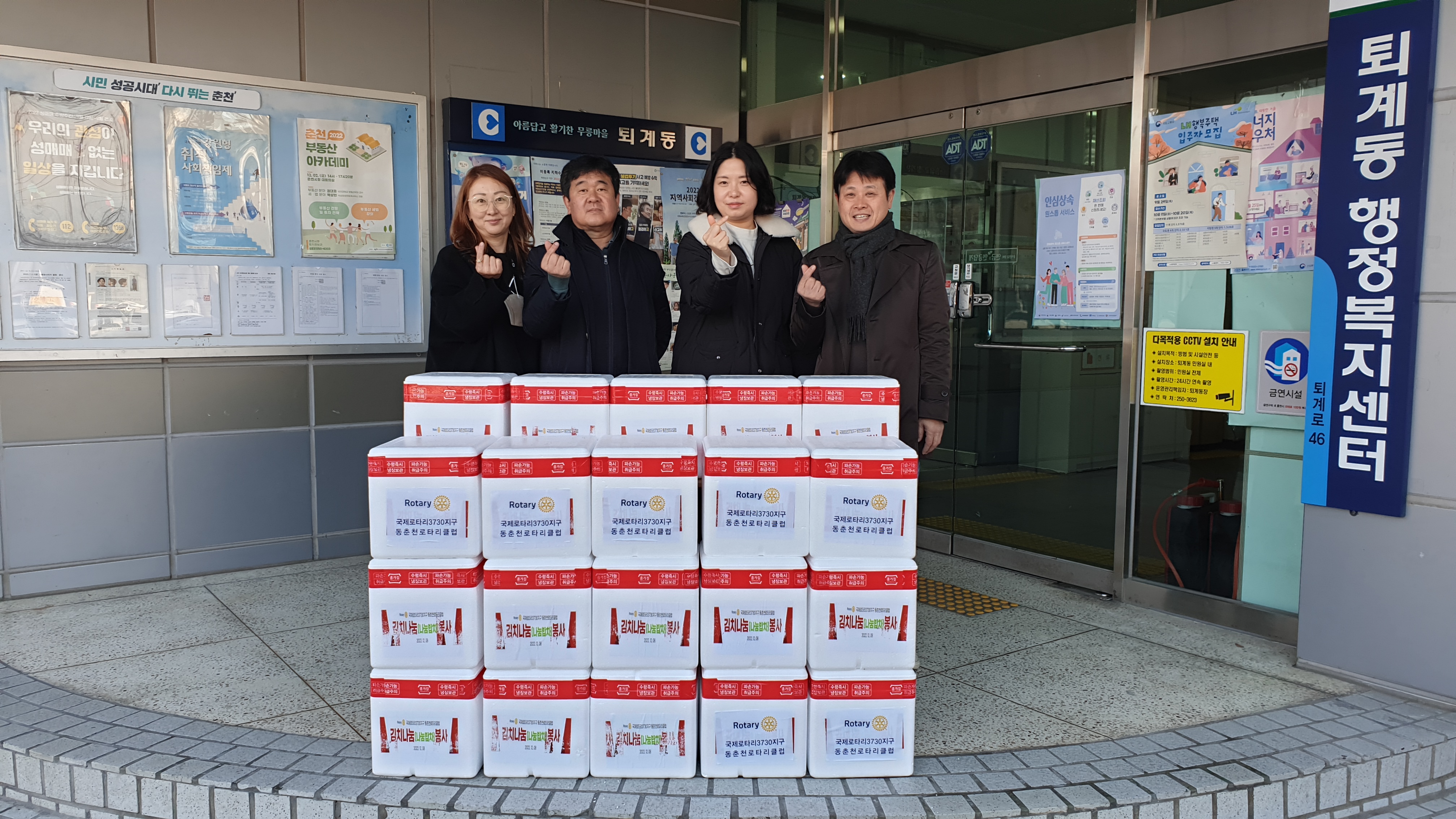 [강원사회복지신문 김도연 기자]=동춘천로타리클럽은 지난 12월 8일 춘천시 퇴계동행정복지센터를 방문해 관내 저소득층을 위해 김장김치(100KG)를 전달했다.