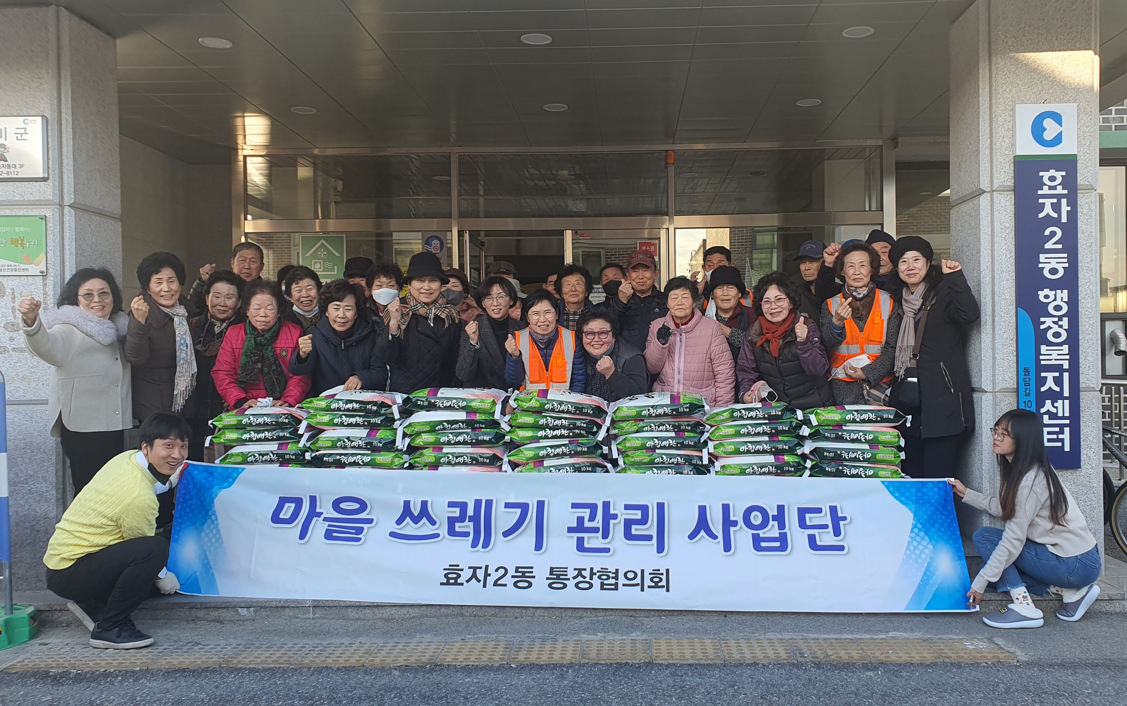 [강원사회복지신문 이정환 기자]=춘천시 효자2동 통장협의회(회장:김영숙)는 지난 12월 8일 2022년 마을쓰레기 책임관리사업을 통해 수거한 투명페트병을 판매해 불우한 이웃에게 쌀을 전달했다.