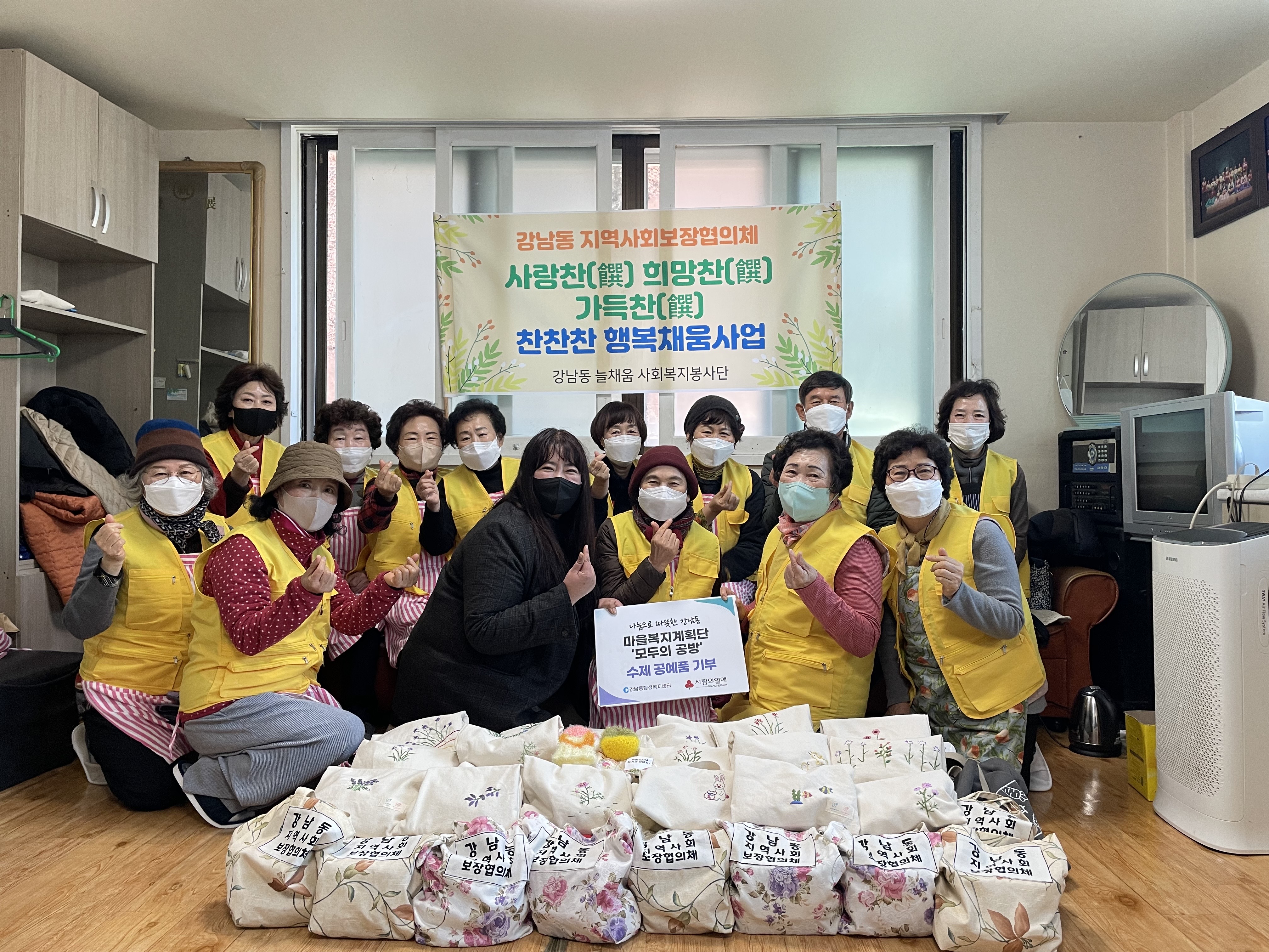 [강원사회복지신문 이정환 기자]=춘천시 강남동 지역사회보장협의체(위원장:이옥희)는 지난 12월 8일 강남동 모두의 주방에서 직접 만든 반찬(고등어조림외)과 마을복지계획단 모두의 공방에서 만든 수제공예품(가방,수세미,비누)을 독거 어르신등 지역사회 소외된 이웃 33가구에 전달했다.