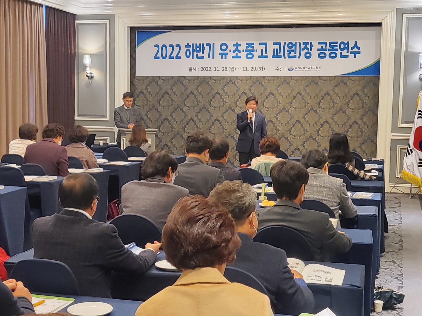 [강원사회복지신문 김도연 기자]=강원도정선교육지원청(교육장 김근익)은 지난 11월 28일(월)~29일(화) 관내 유·초·중·고 교(원)장을 대상으로 공동연수를 개최하였다. 이번 연수는 학교지원 방안 모색 및 지역 연계 교육과정 운영 내실화를 위해 유·초·중·고 연계 및 지역특화 교육과정에 대한 공유와 소통을 통한 지...